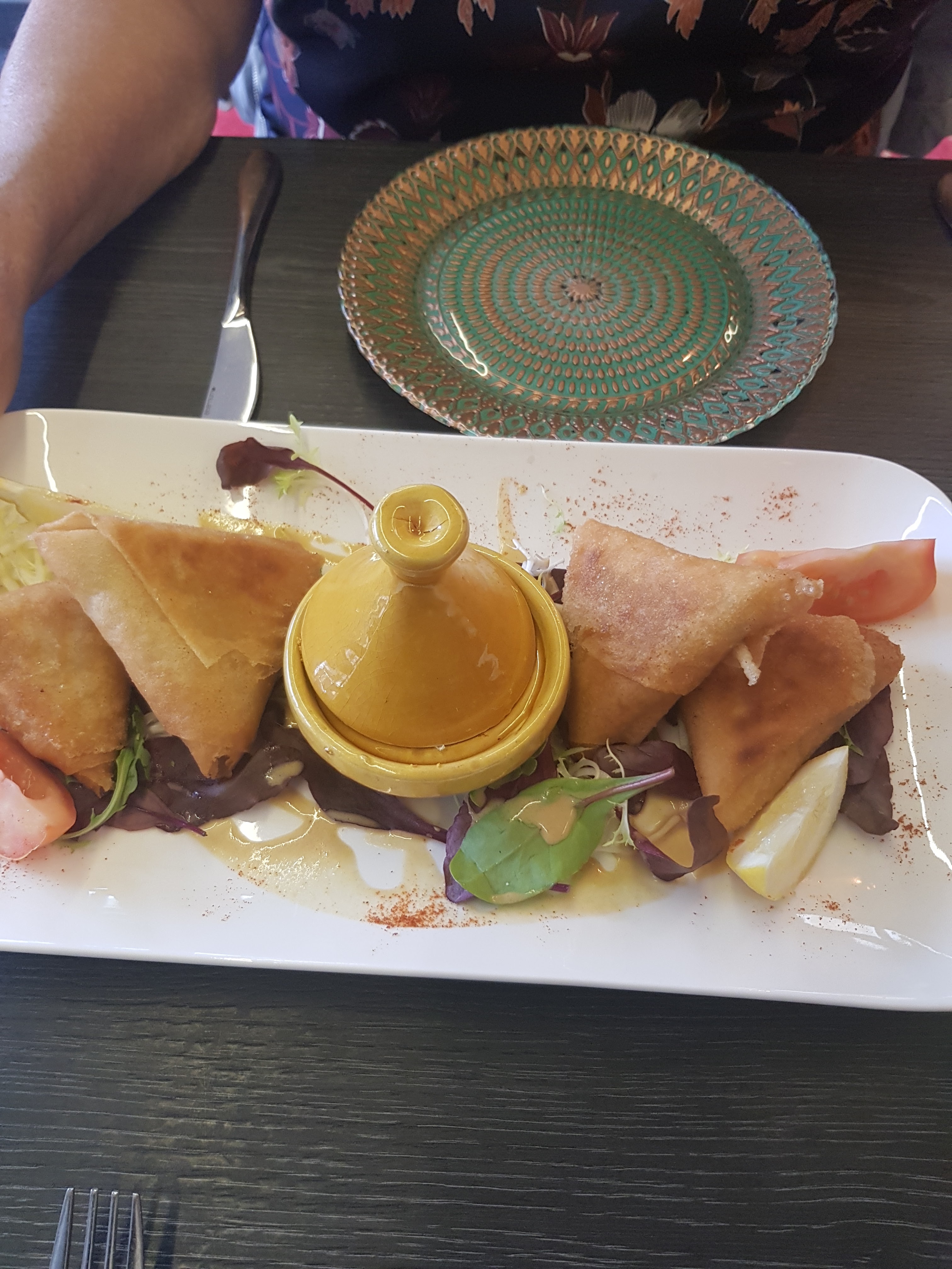 Restaurant oriental très bon, nous avons pris le tajine poulet légumes et le tajine au pruneaux, bien garni avec semoule ou frite compris dans le tarif. Vous ne ressortirez pas le ventre vide .