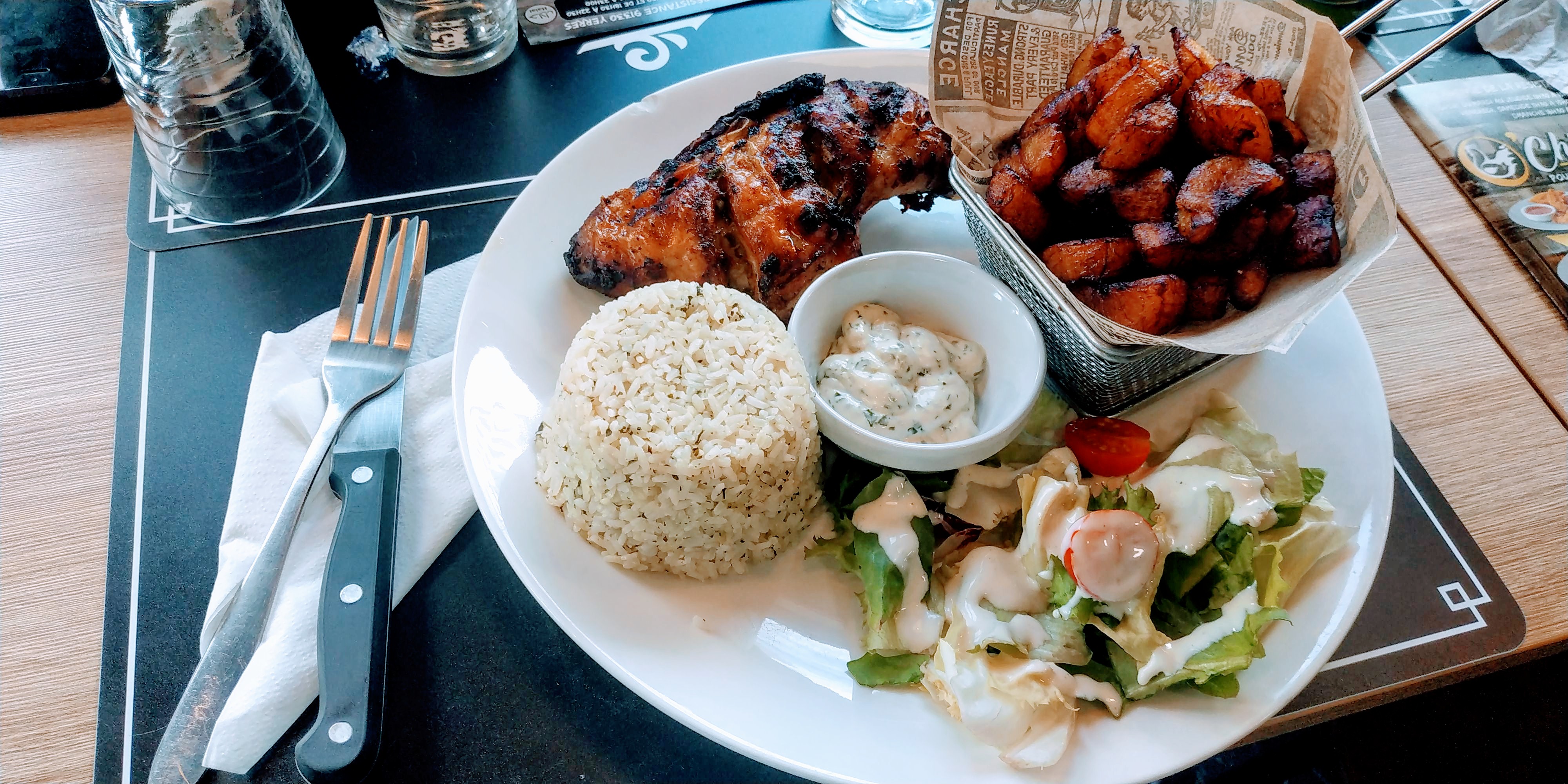 Vraiment excellent!! Le chicken comme on l’aime l’assiette vraiment bien garnie les sauces sont savoureuses, un goût vraiment génial. Merci beaucoup pour l’accueil