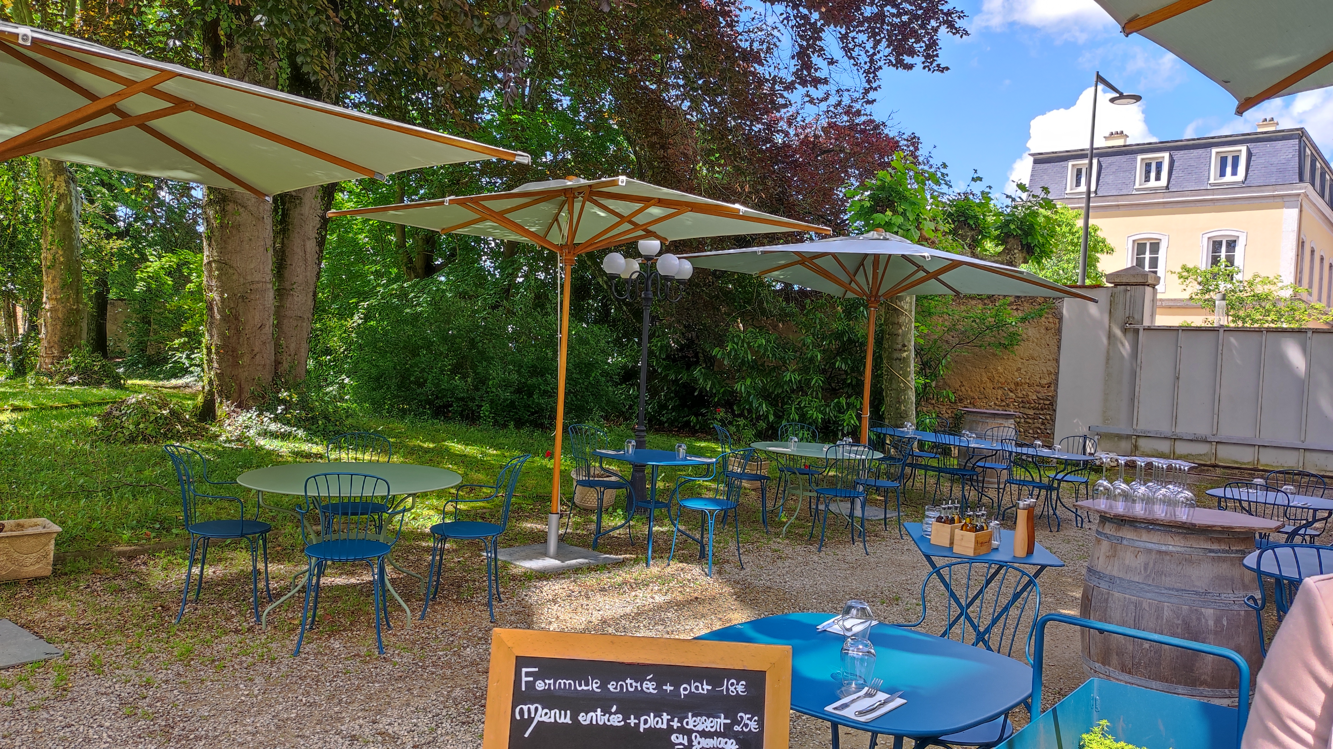 Restaurant au très joli cadre une terrasse dans un parc ombragé cuisine raffiné et service attentionné je recommande vivement ce restaurant
