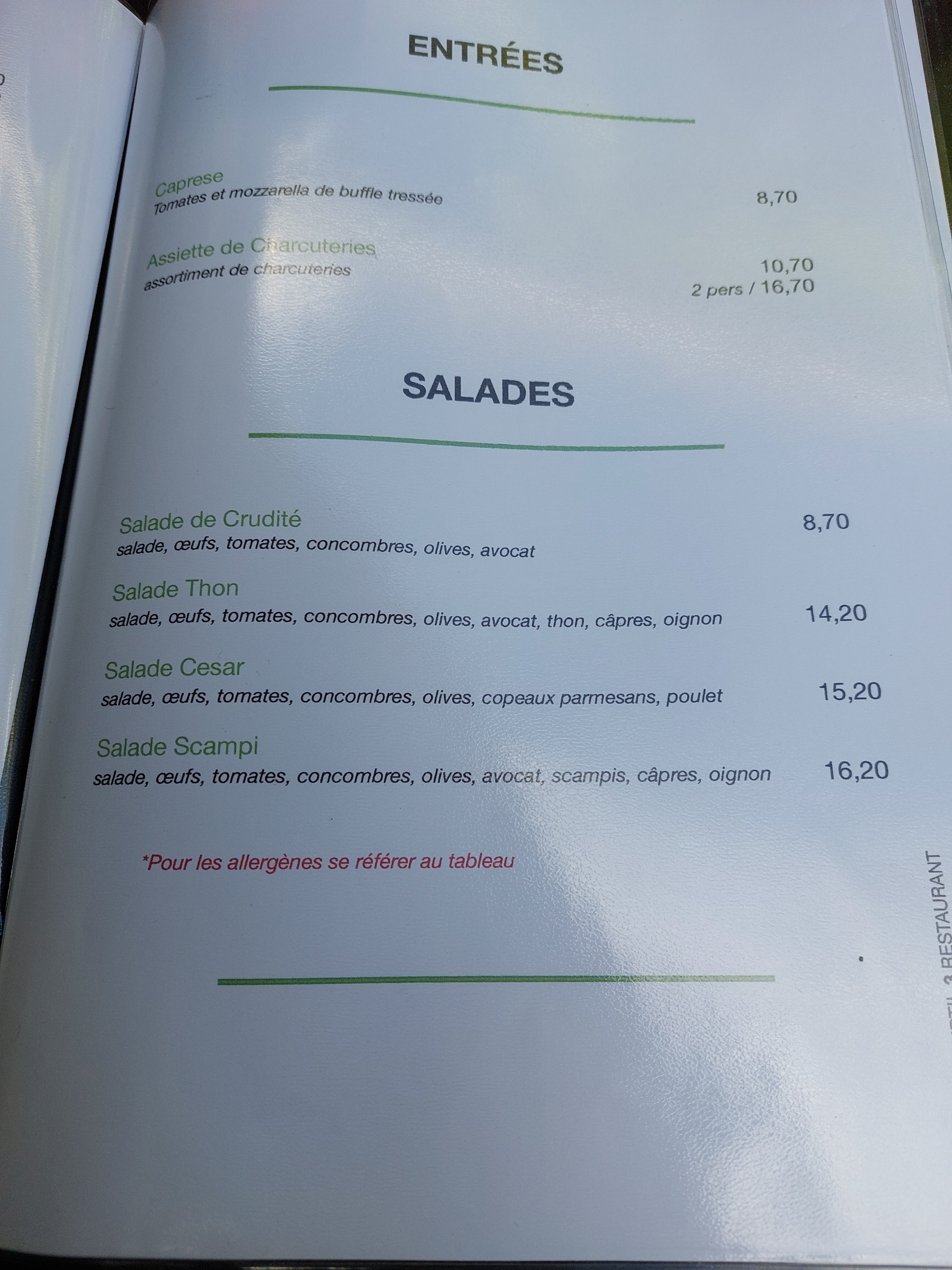 Tres bon restaurant avec des choix simples mais très bon. Juste un gros bémol, j ai pris un demi de rouge qui sur la carte était à 9€ et sur mon addition on m a facturé 12,70€! Je n ai pas vérifié de suite c est très dommage...le principe me perturbe...