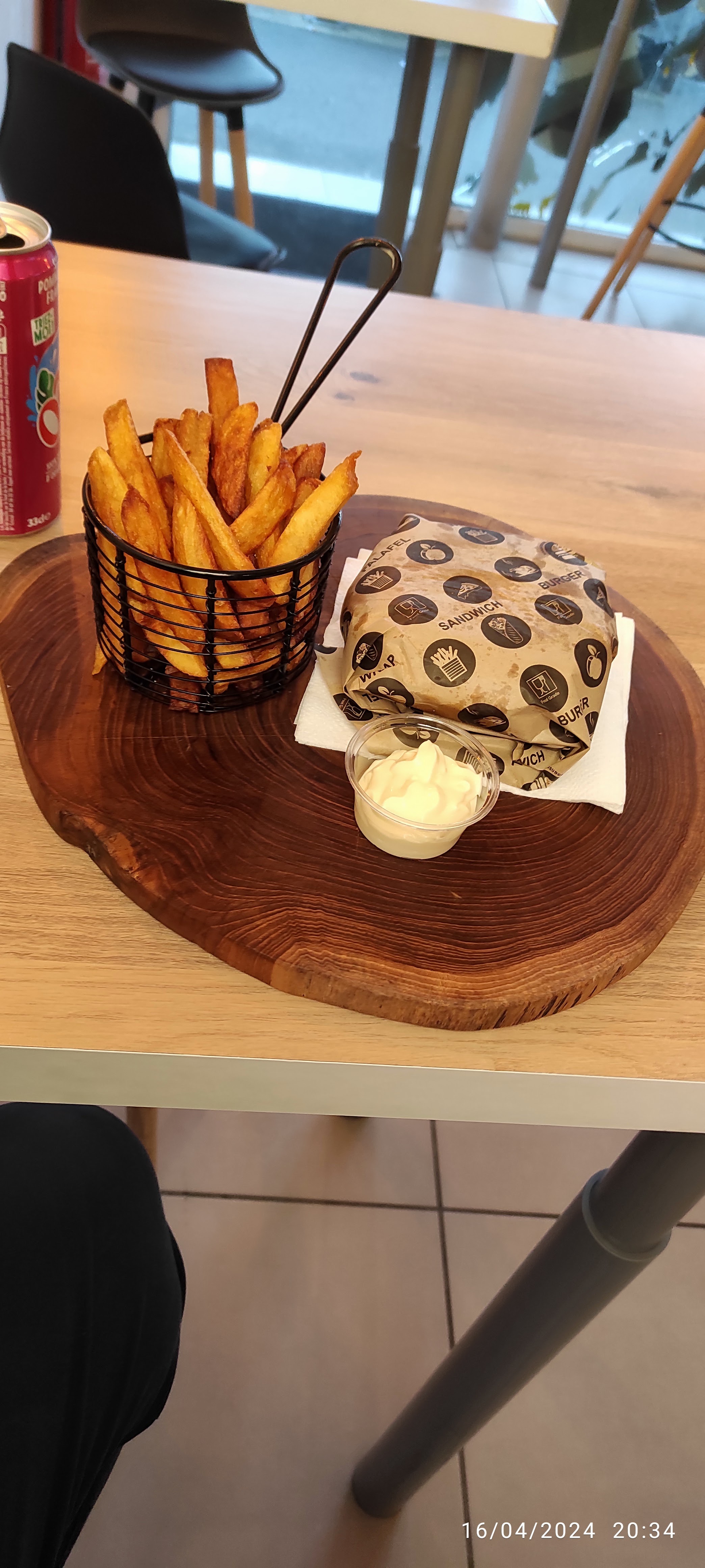 Enfin un restaurant qui ne se moque pas de nous ! Belle découverte sur Uber… des frites incroyablement bonnes et faites maison ! Ultra généreux dans la quantité alors que j’ai pris “petite frite” à moins qu’il n’y est eu une erreur 🫢. Burger super bon avec un bon pain qui ne s’émietter pas. Pour 16€ seulement ! J’ai clairement plus faim !