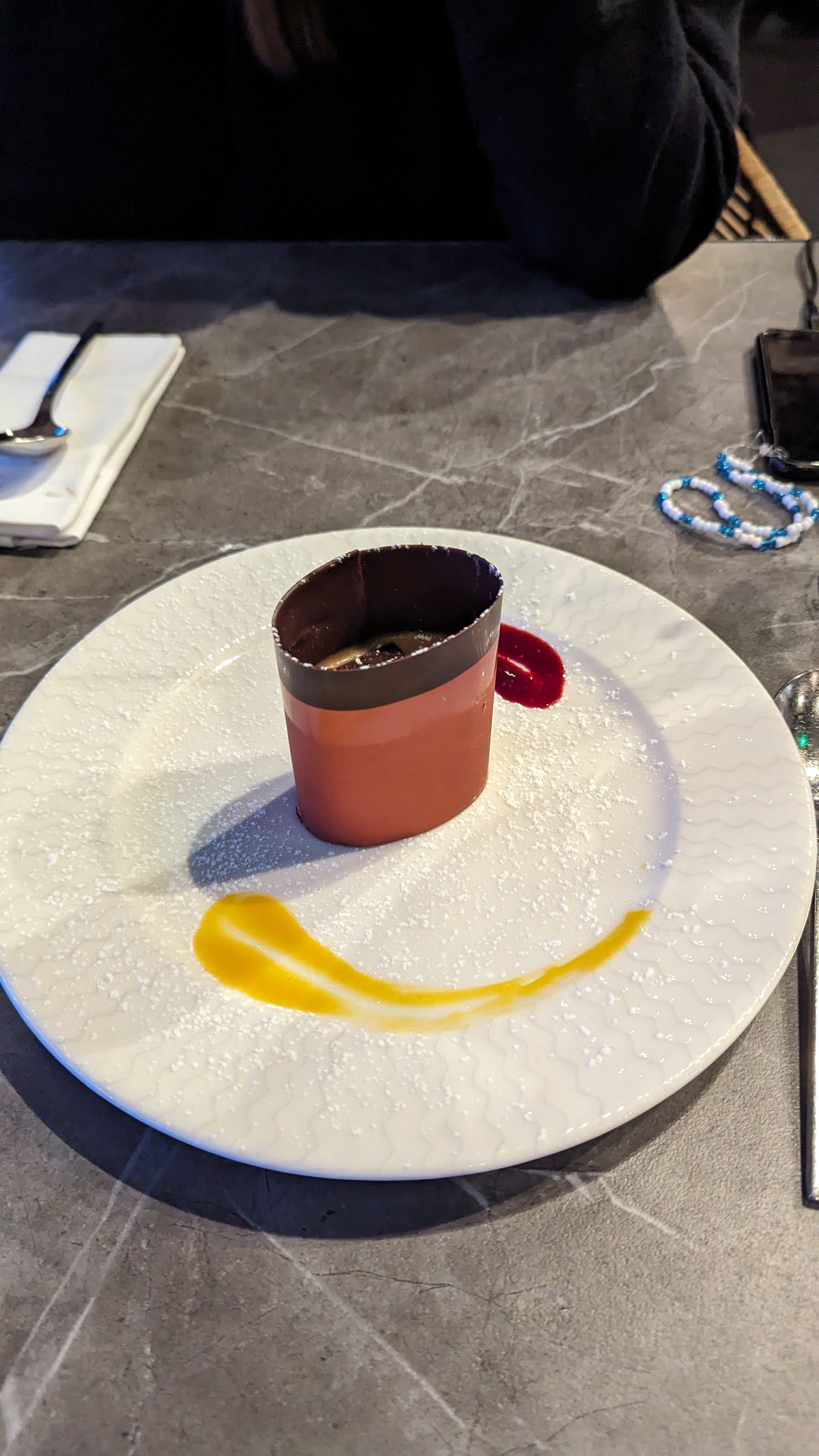 C'était top, le cadre super agréable(à voir de jour)les cocktails sont super , ont est resté sur l'entrée de fromage à partager avec mon épouse, assez copieuse, avec un bon pain boulanger, nous n'avons pas pu goûter de plat mais un dessert pour la gourmandise le nantilus Nous allons revenir demain pour le salé 😁