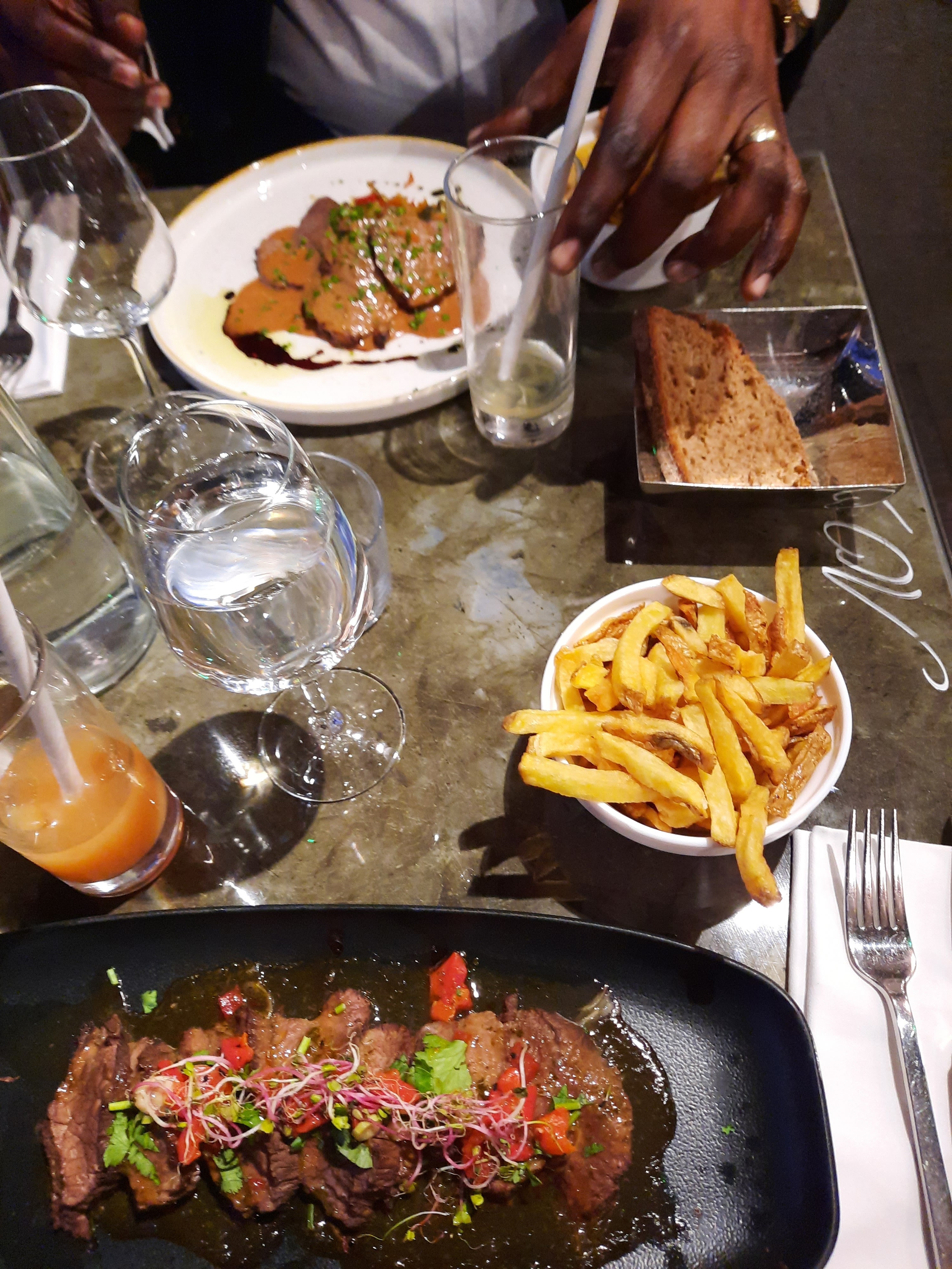 Cadre intéressant, bon cocktail mais la part de poisson du médaillon de lieu était ridicule. Le pavé de rumsteck de bonne qualité servit avec de bonnes frittes maisons manquait d'un vraie beurre d'ail. La glace du menu enfant était fondue avant l'ouverture. Dessert gourmand pas top