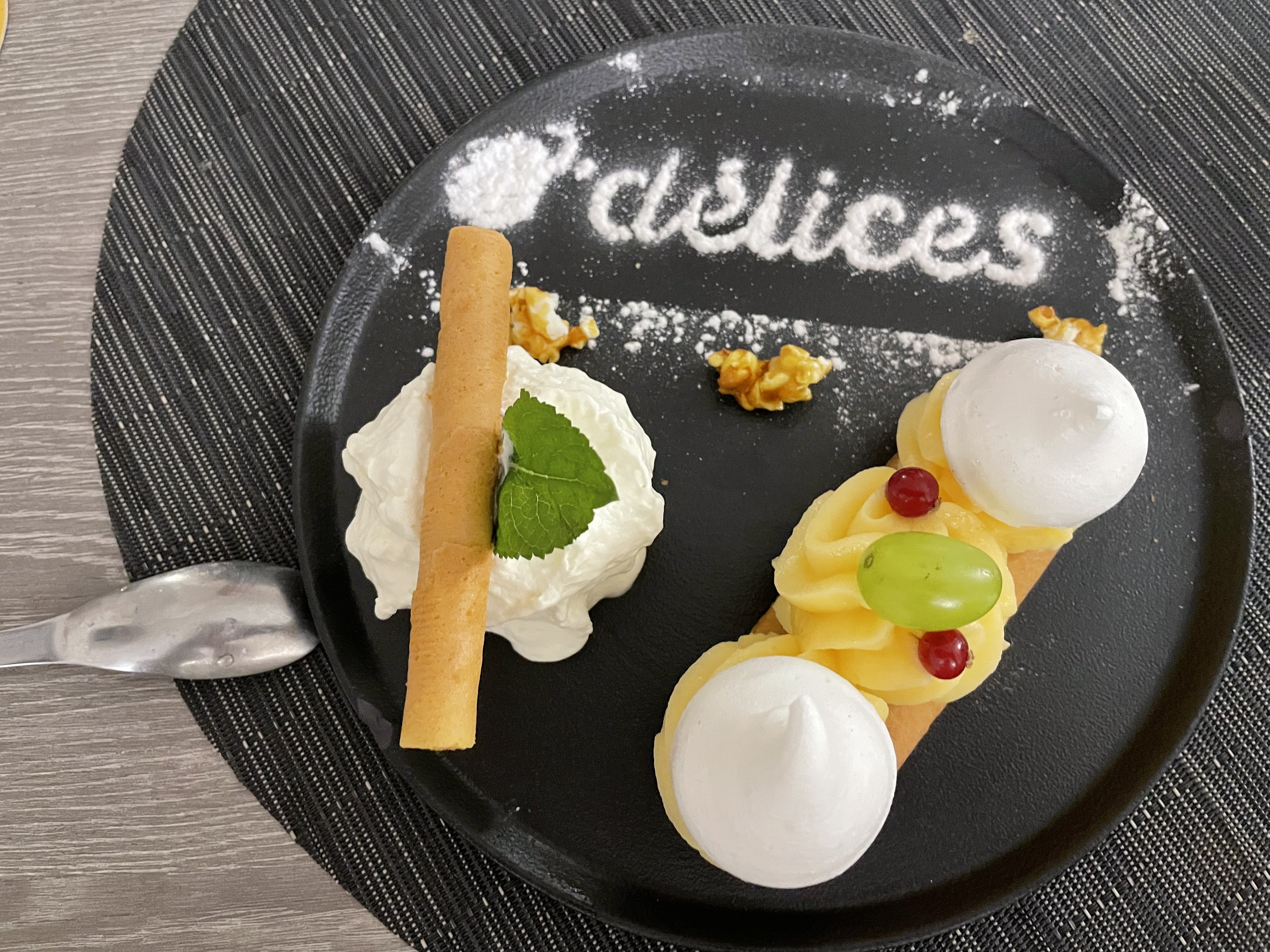 Nous avons tres bien mange aux delices mais nous etions tres mal places sur une table a moitie dans un trou contre un poteau avec le passage permanent des serveurs qui me bousculait malgre notre demande nous n avons pas pu changer et pour couronner le tout l addition etait fausse en notre defaveur je pense qu il faudrait que le personnel du restaurant soit un peu plus attentif au bien etre des clients et respecter les mesures de distance par rapport au covid