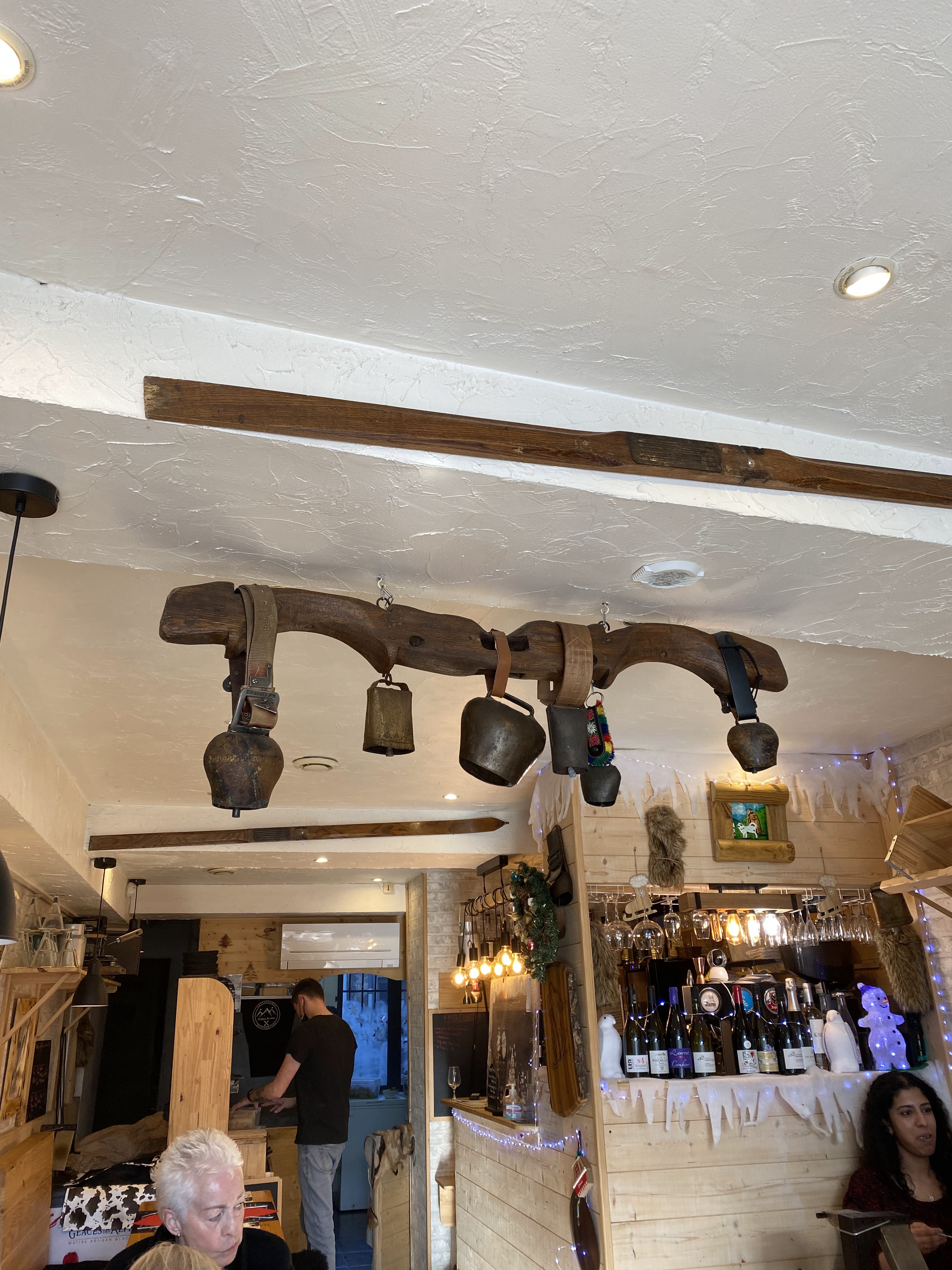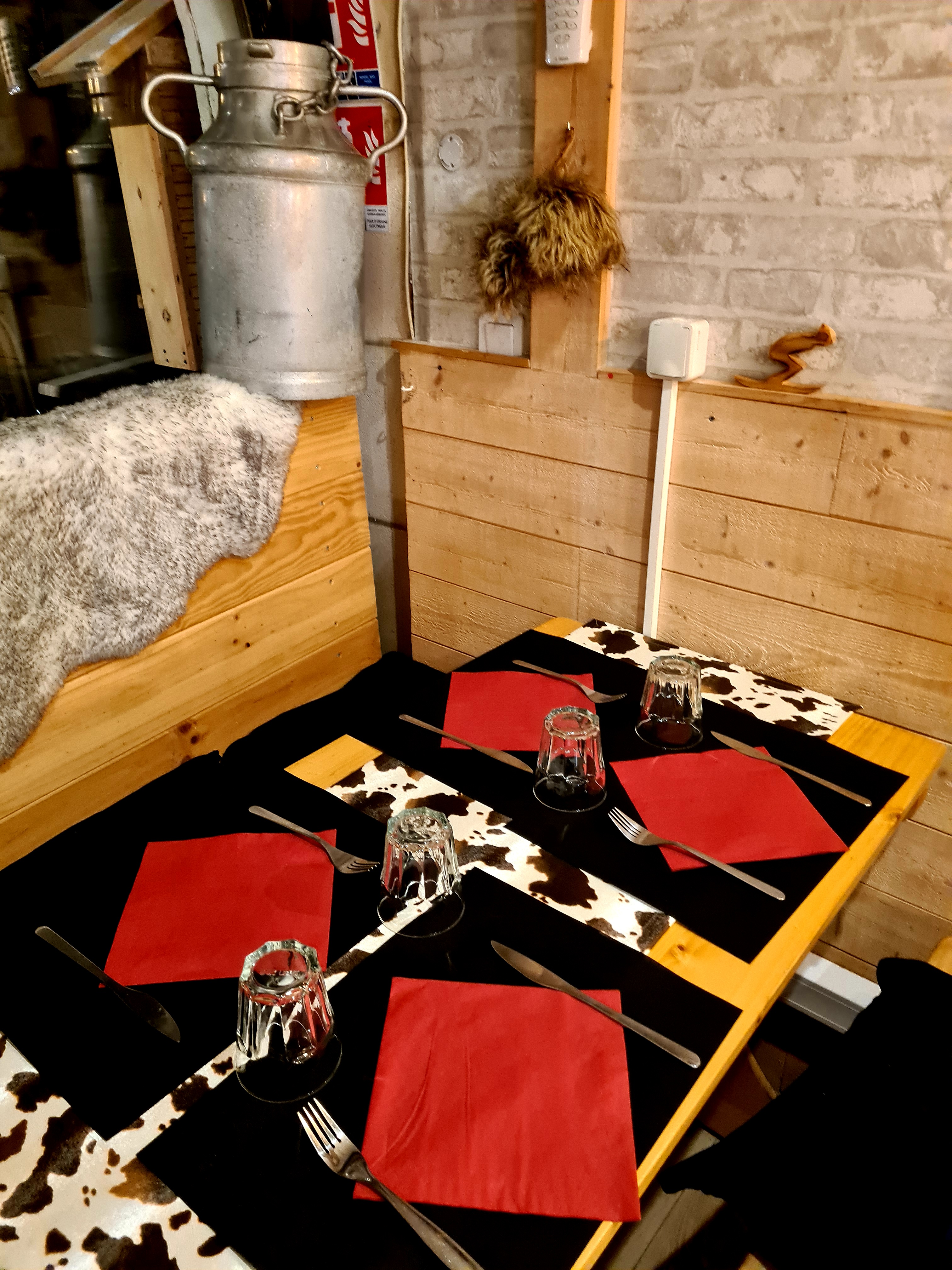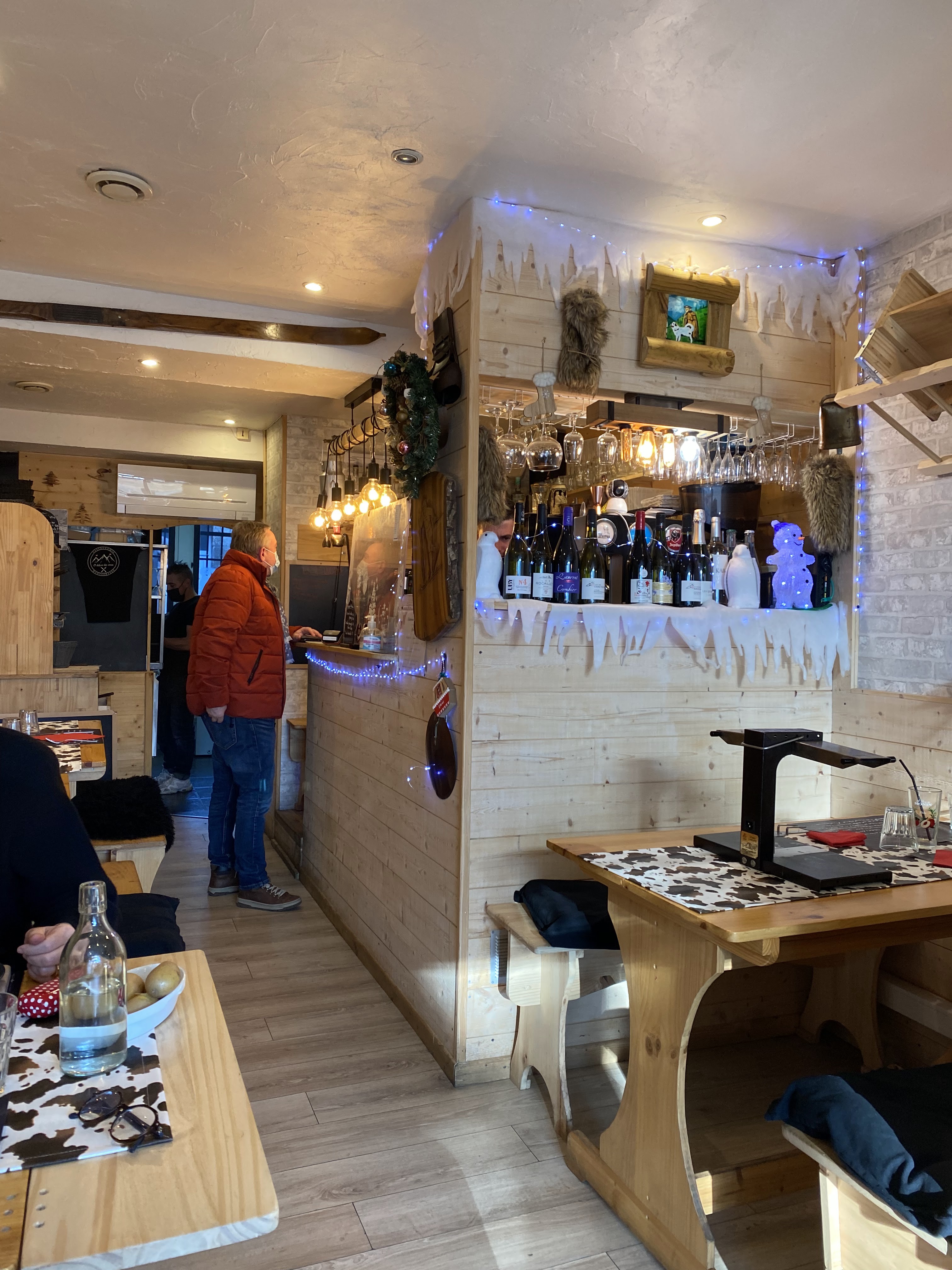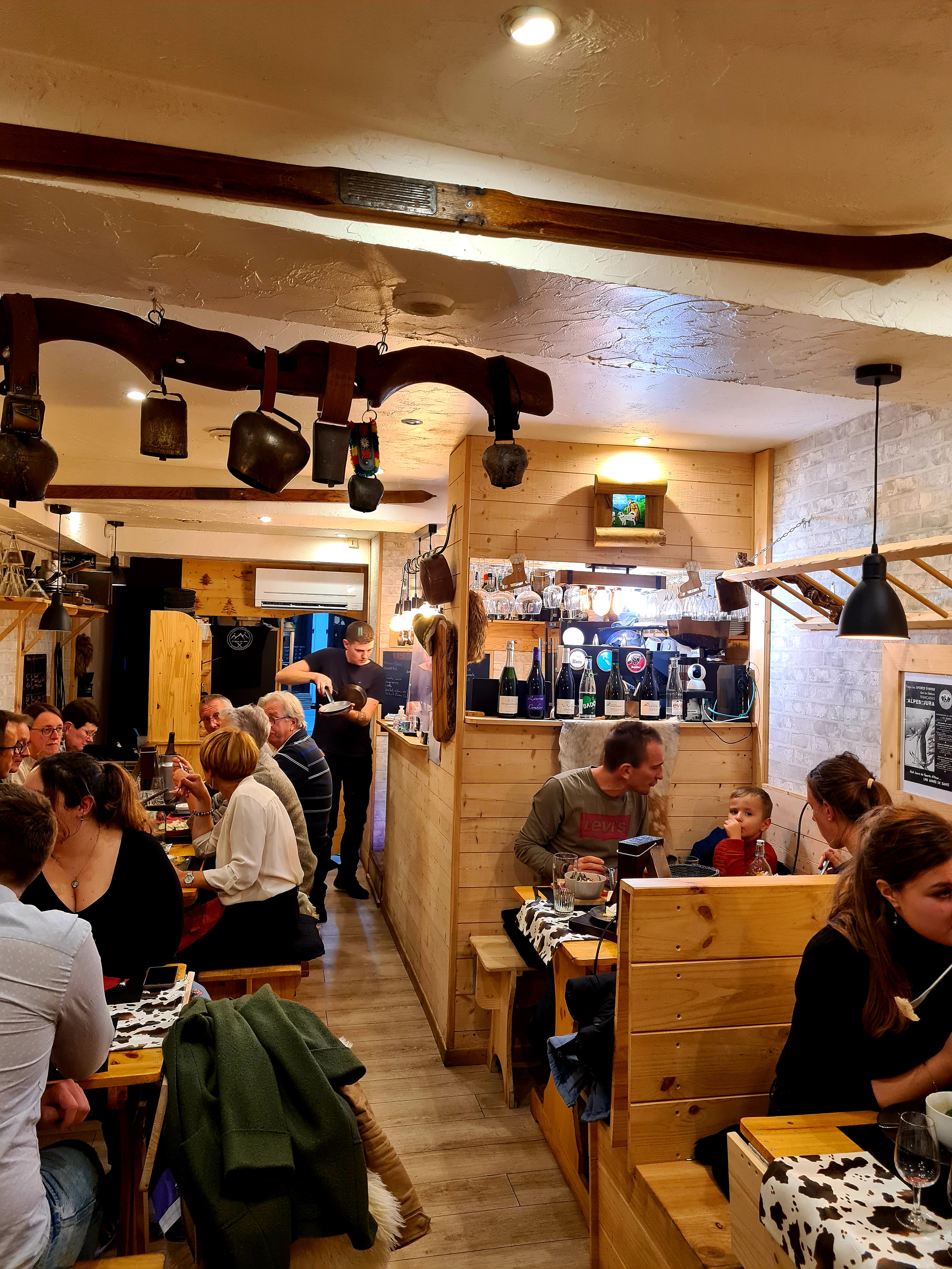 Quand la montagne vous manque. Restaurant avec petite salle qui vous permettra de manger une raclette ou fondue ou reblochonnade au brasero. 👍