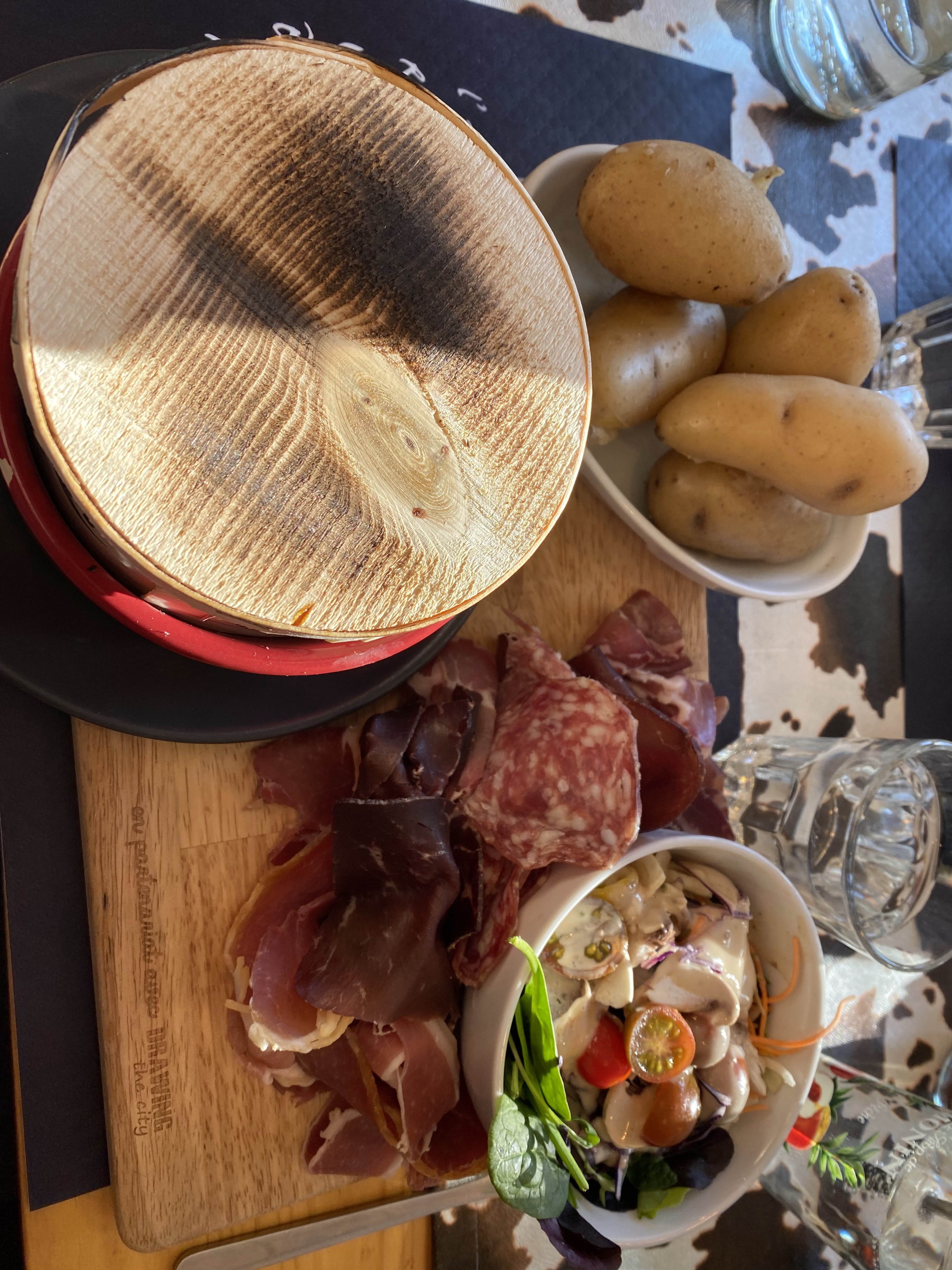 Restaurant bon mais pas fou non plus. Le fromage à raclette n’avais pas trop de goût, nous avons dû réclamer les pommes de terres car notre fromage fondait déjà dans l’assiette. Elles sont arrivées en manquant de cuisson. Pas de jambon blanc mais que du jambon fumé et rosette. On se sent un peu mis à la porte quand on sais qu’on doit tous être partis pour le service suivant et que personne ne doit être présent. Ne vous attendez pas à un truc extraordinaire. Ça fait « le job »