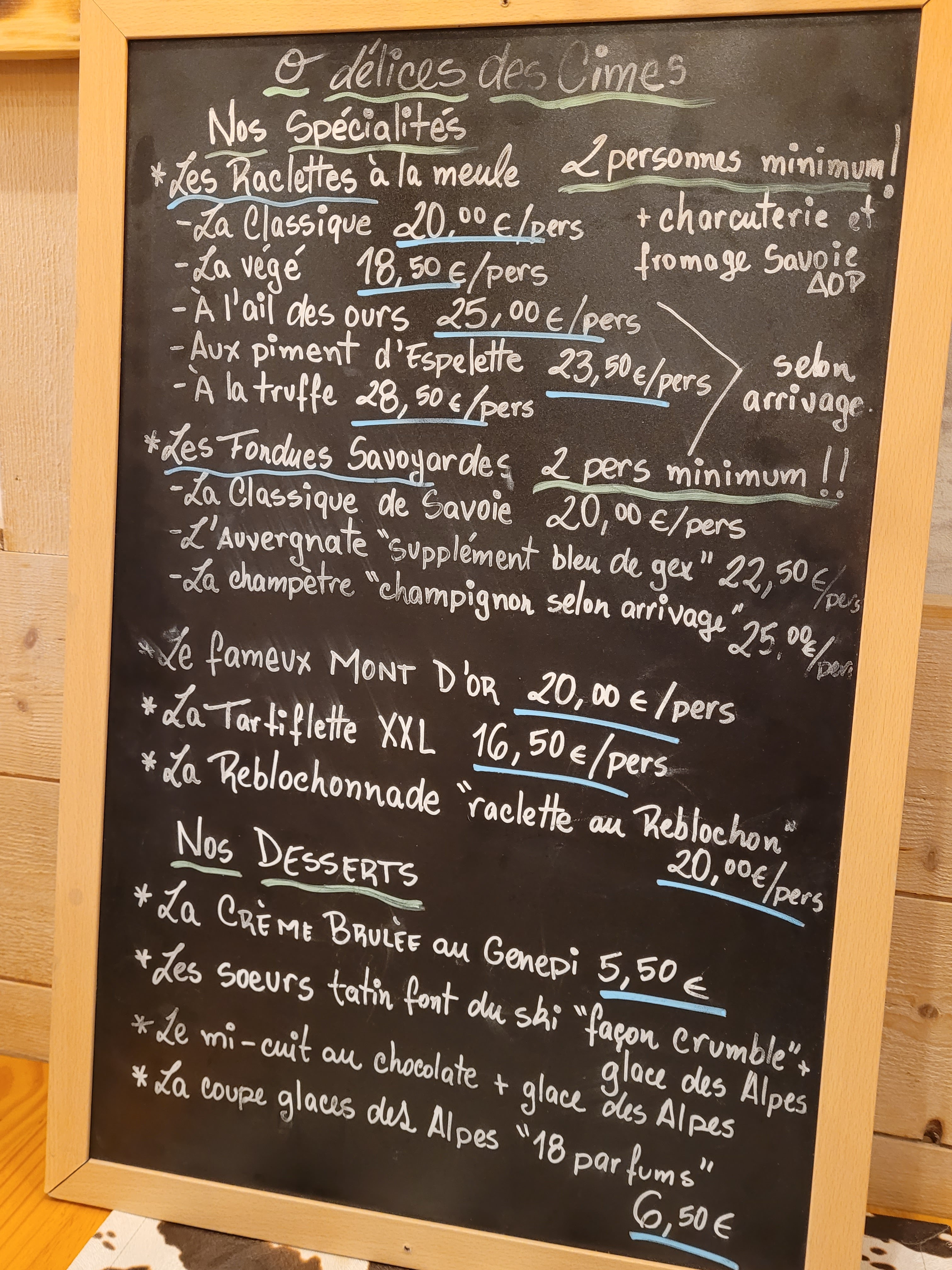 Tarifs exorbitants pour une raclette de fromage ….! Dommage.