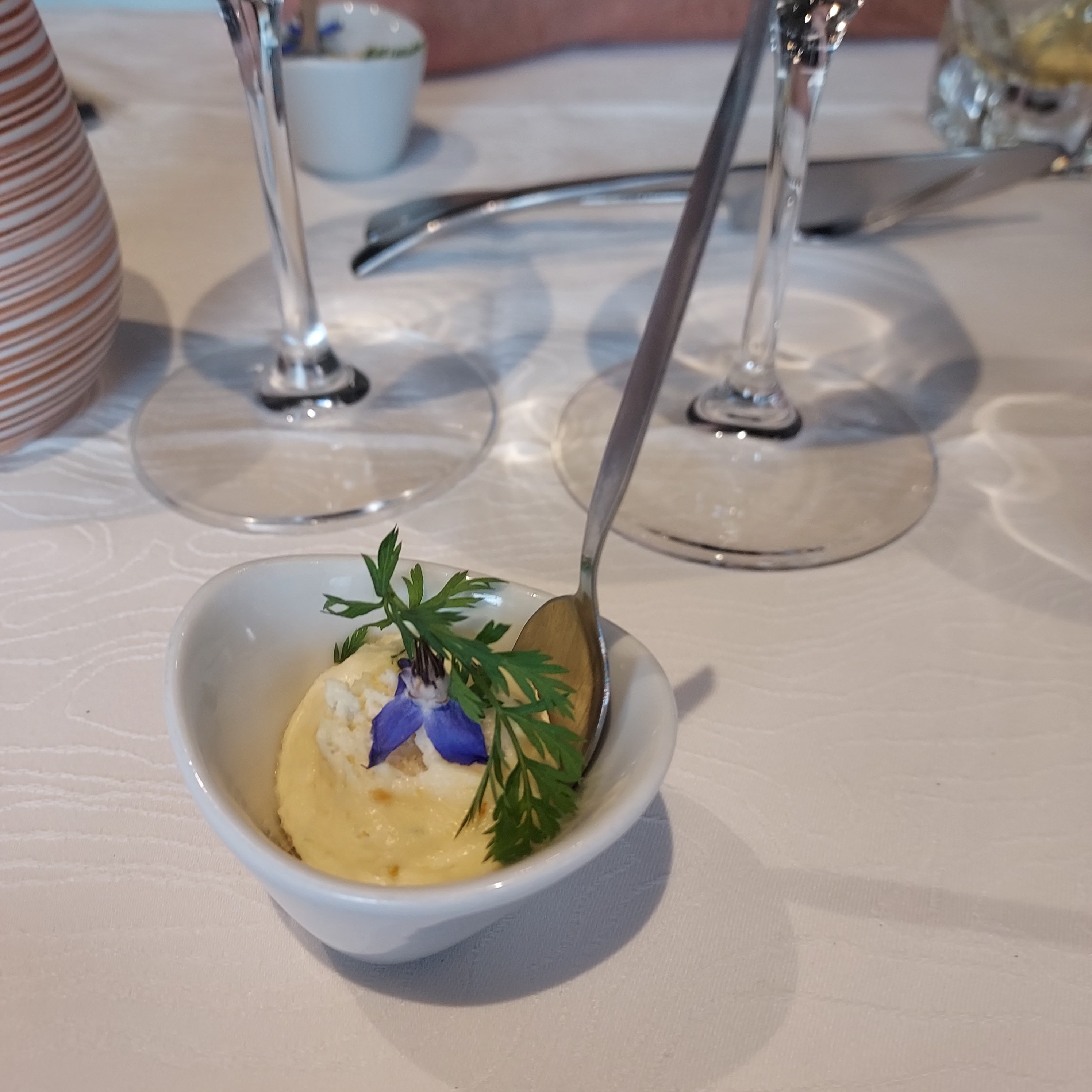 Très beau restaurant. Repas copieux et très savoureux. Délicate attention pour la mise à disposition de plaid lorsque l on mange en terrasse. Chef passionné et présent en salle, nous fait découvrir les saveurs des fleurs. Très belle découverte Merci pour ce bon moment