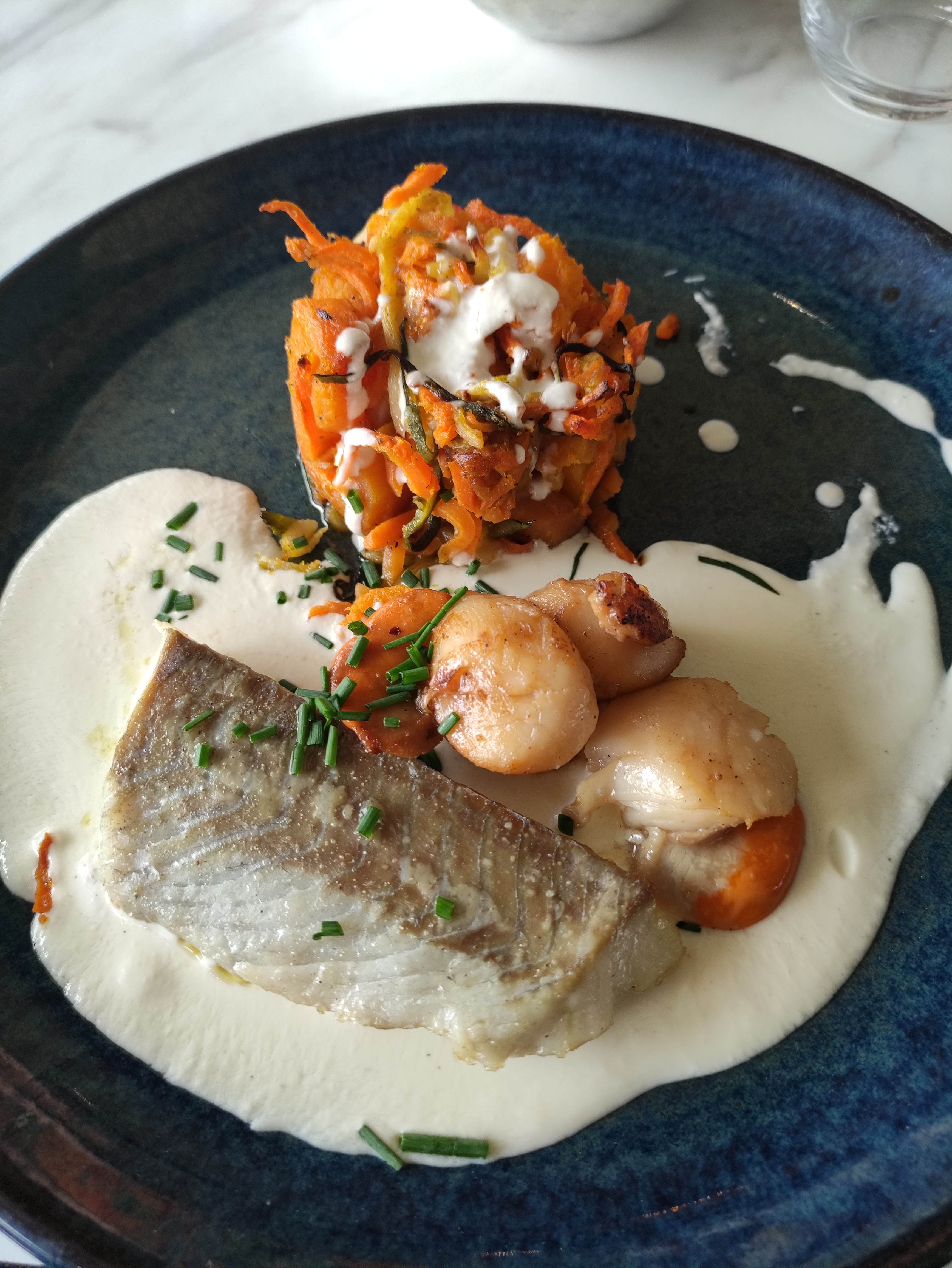 Invitée par mon mari pour mon anniversaire. Les plats sont très beaux mais certains trop salées et d'autres manquent de saveur Beaucoup d'attente au niveau du service alors que la plupart des tables étaient vides. Nos cocktails servis 20 minutes après avoir eu notre planche apéro. Le moment de l'addition un véritable folklore car il y avait des difficultés à retrouver qui était à quelle table. Aucune attention particulière alors que mon mari avait précisé lors de la réservation que c'était pour mon anniversaire Bien que le cadre soit joli, je reste déçue