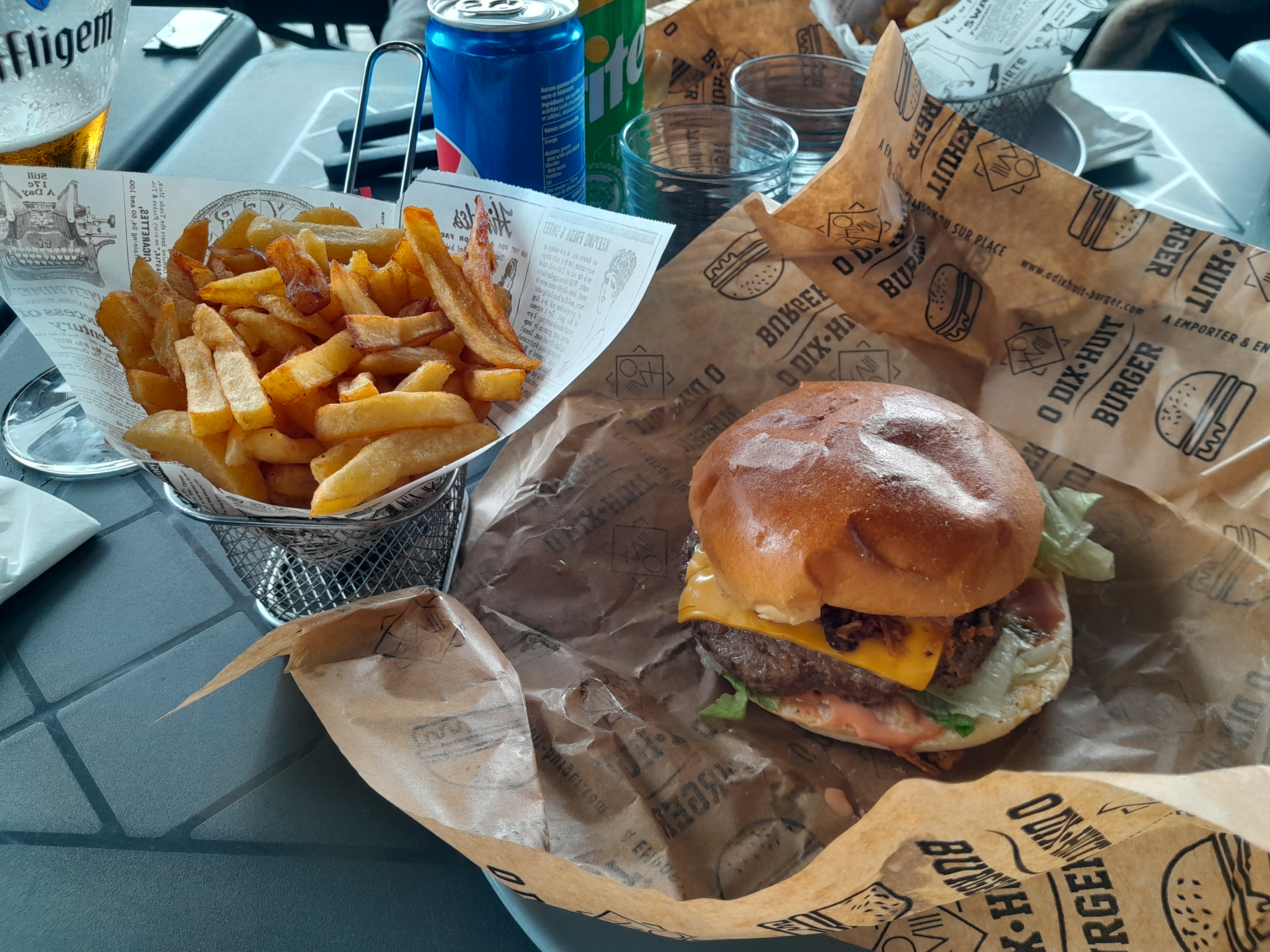 Un grand merci a toute l’équipe o dix huit burger , nous avons pu nous restaurer a 15h , produit simple variée et tres bon , jai adore les frites maison et le burger O cheese , ma copine a pris une salade composés. Tres bon Equipe jeune service avec le sourire. On reviendra