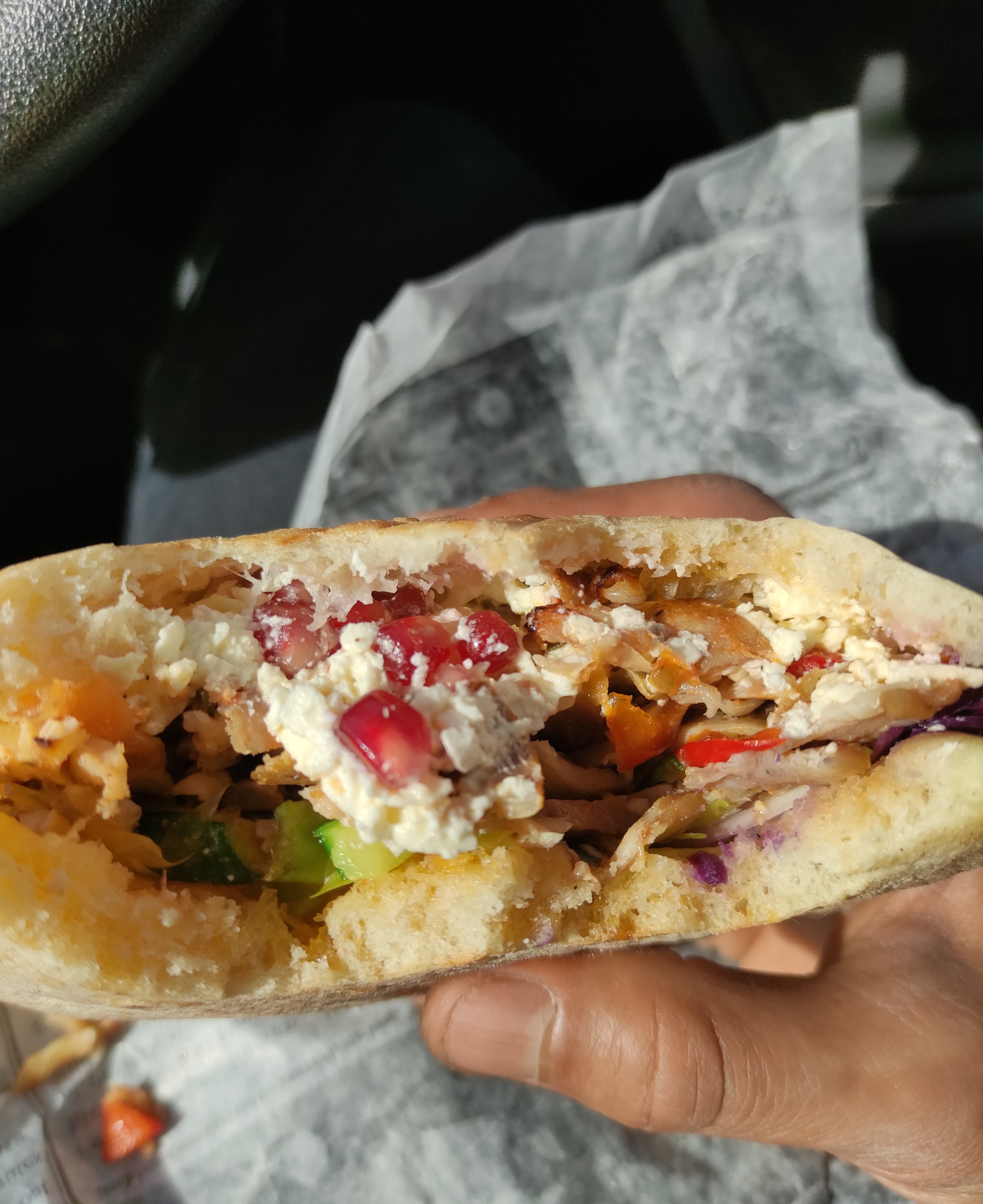 Très très bon !! La viande bien grillée et épicée. Elle est savoureuse, pas grasse mais moelleuse. Très agréable en bouche. Le pain fait maison et les graines de grenade rajoutées font toutes la différence. Exceptionnel !