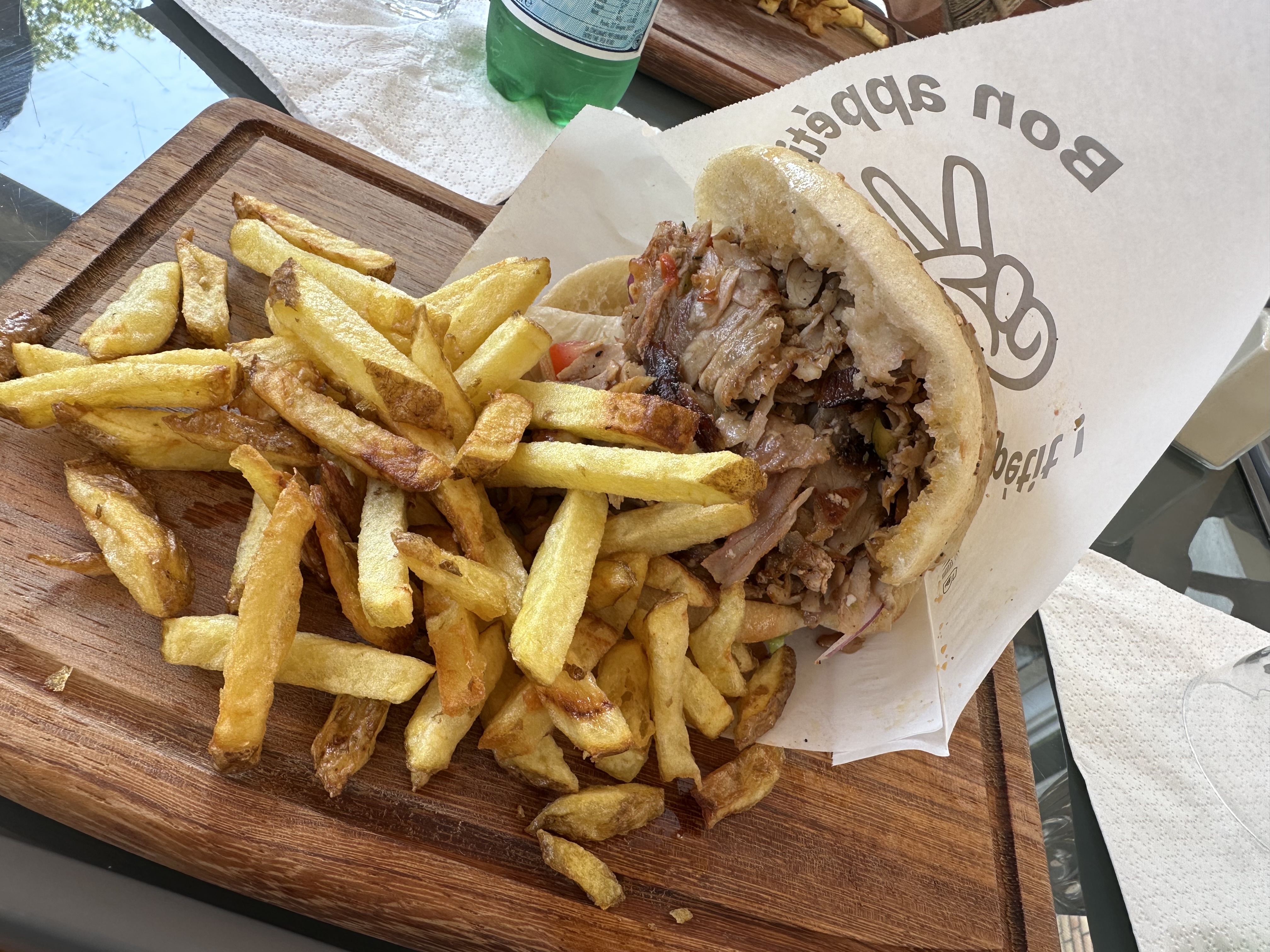 C'était vraiment bon. Je ne m'attendais pas à ce type d'expérience avec grec/kebab/doner. Palette de goûts très intéressante. Bon accueil. Gros bonus pour l'assaisonnement de la viande (et la garniture). 7,50€ avec Frites. Plus que correct! A refaire! Je recommande vivement.