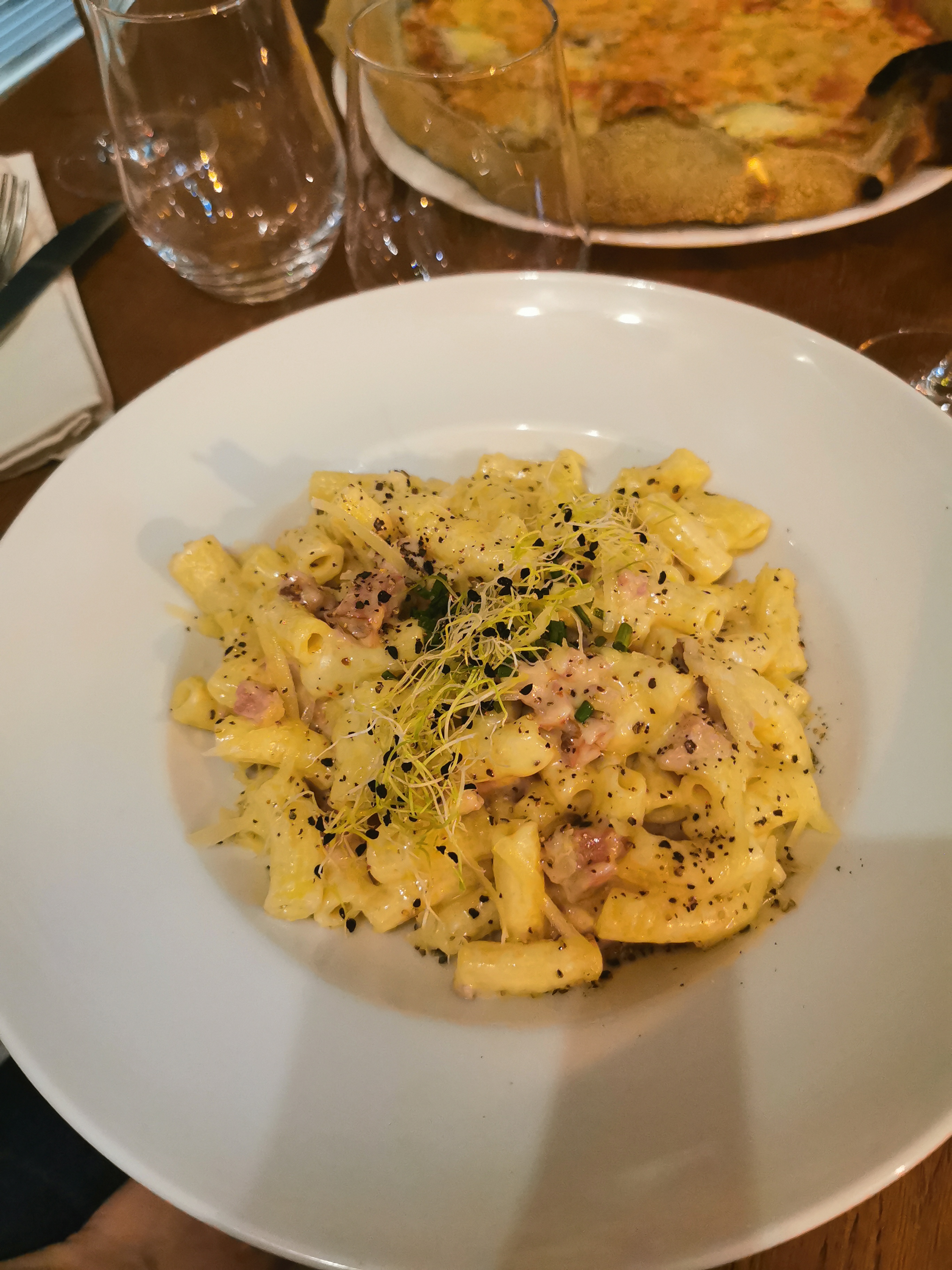 Pâtes fraîches aux truffes délicieuses et très bonnes pizzas ! Service adorable