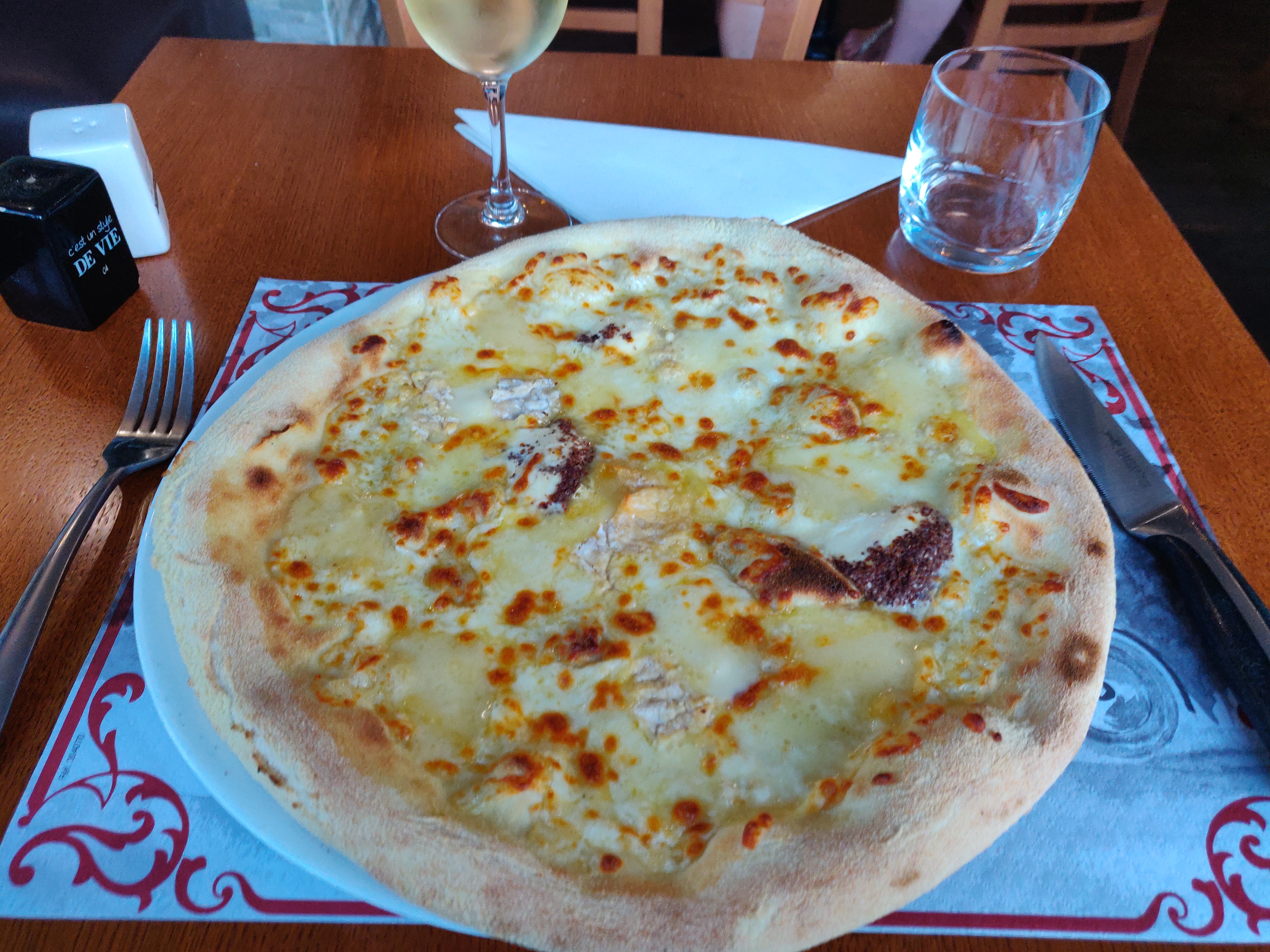 Prix raisonnables, service impeccable, j'ai été servi rapidement (vers 21h). leur pizza mozzarella, époisses, comté et délice de pommard ( photo ) est intéressante. Je recommande.
