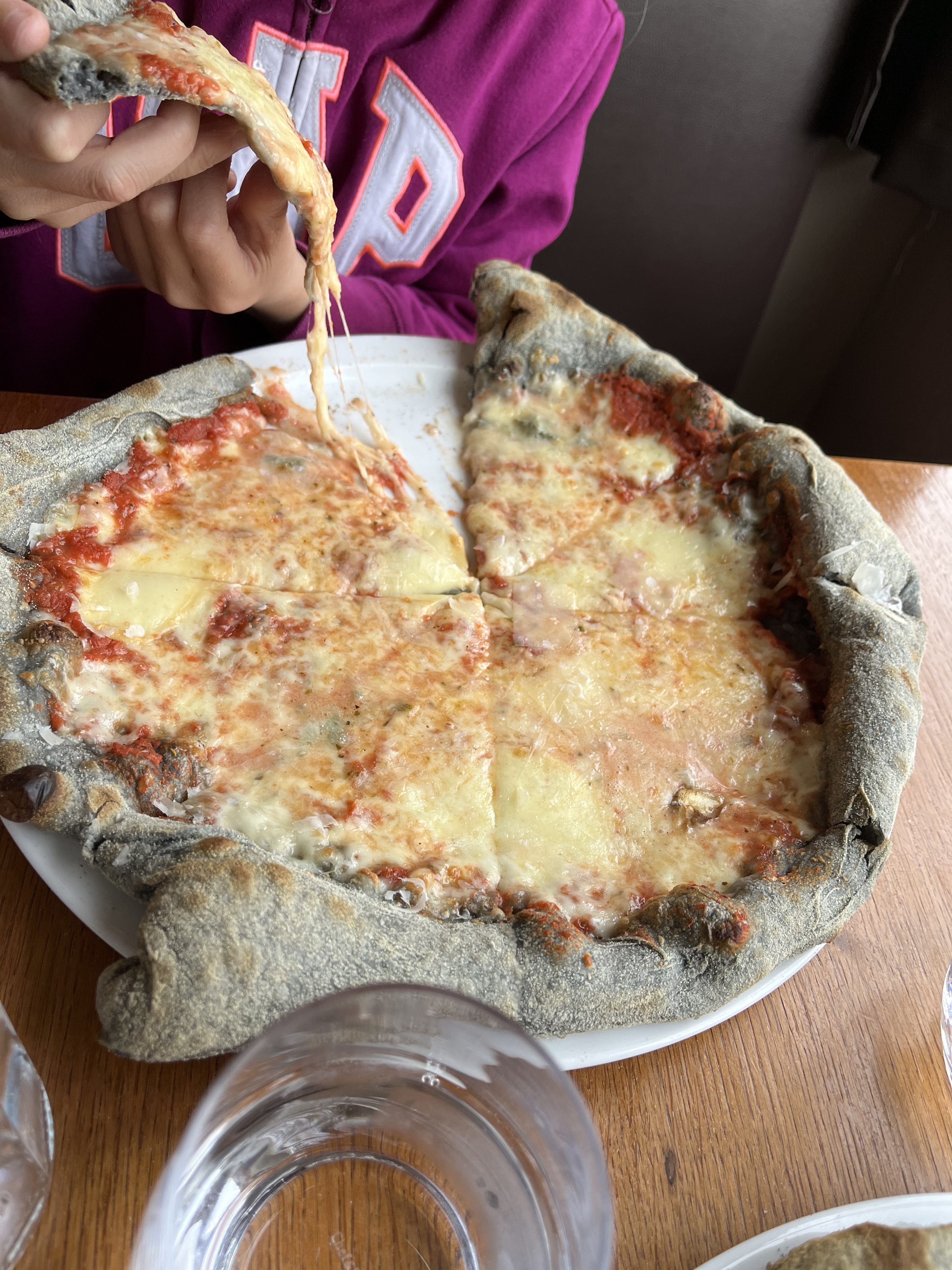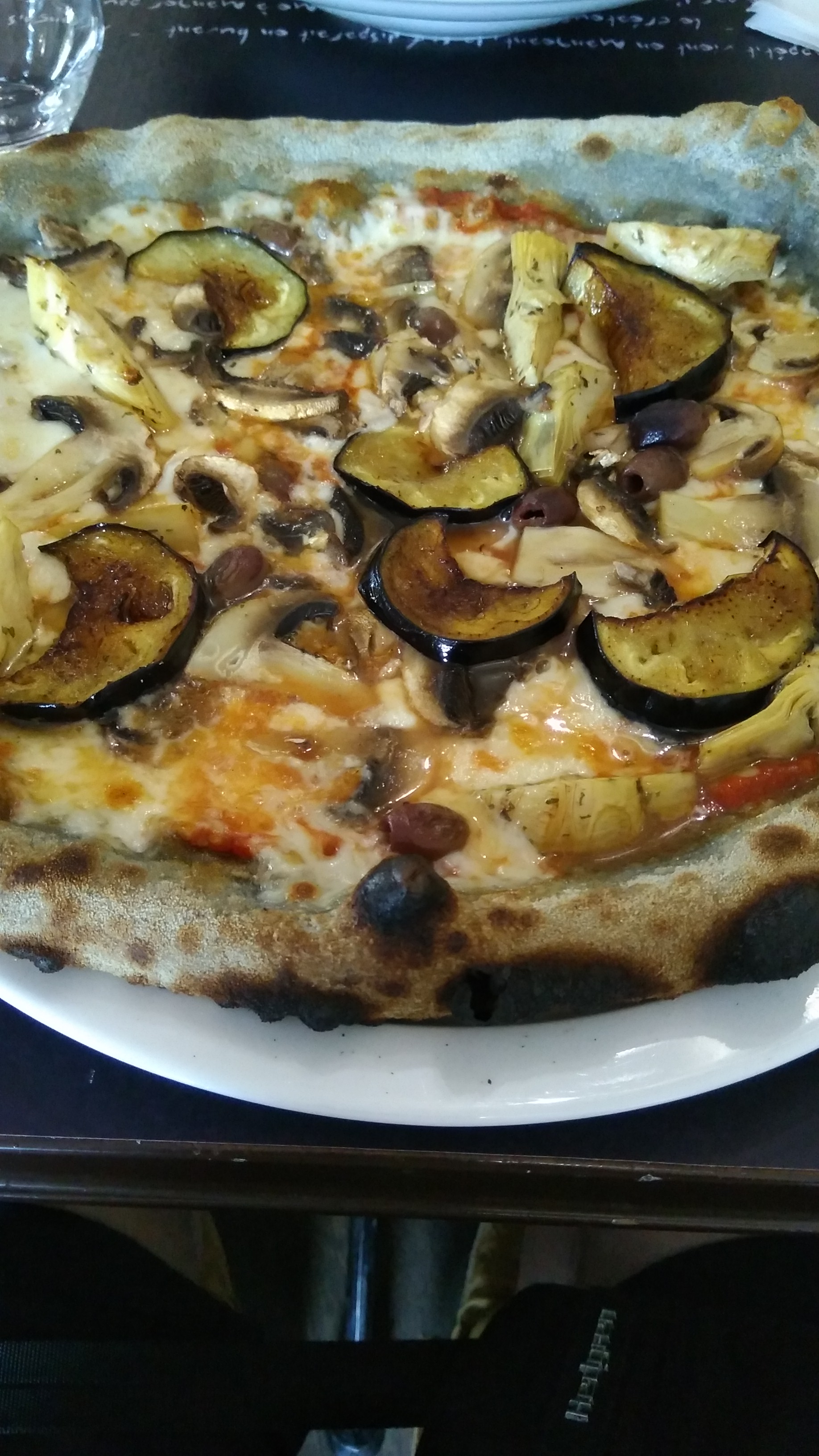Parfait, les pâtes à pizzas sont avec du charbon pour améliorer la digestion ce qui leur donne une petite couleur. Les pizzas sont copieuses entre 11 et 15€ en moyenne. Il y a de la bière italienne La carte évolue toute les 6 semaines La serveuse est très sympa.