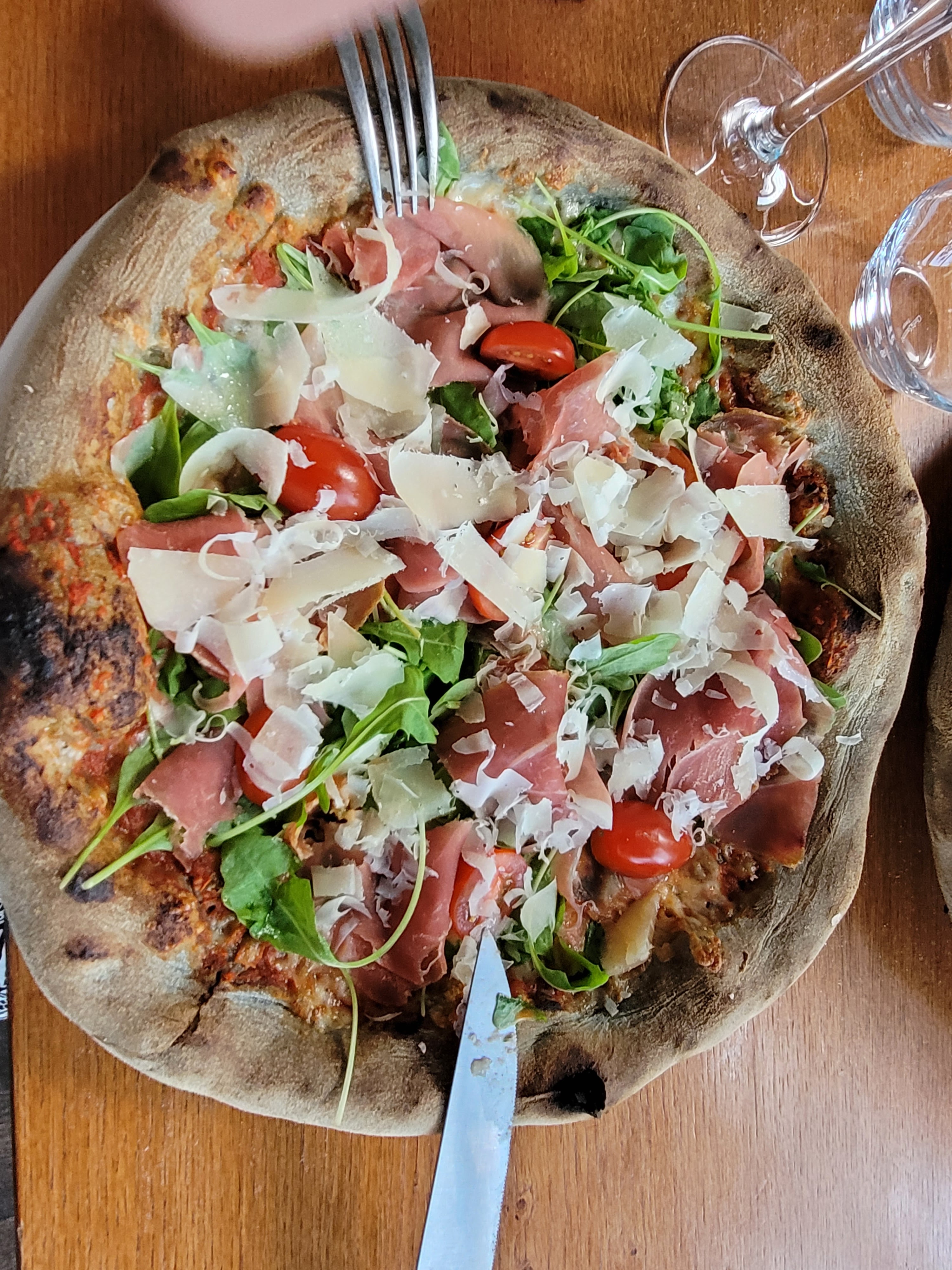 On nous a conseillé ce Petit restaurant. Nous n'avons pas été déçus de cette belle recommandation.( Merci à la cave Loubet Dewailly) Nos pizzas sont excellentes à la truffe( exceptionnelle!!) et l'autre plus tradi au jambon, tomates cerises copeaux de parmesan. La pâte est faite à base de charbon naturel. Pour les amateurs de pâtes épaisses mais pas trop, c'est l'endroit idéal. La serveuse nous accueille chaleureusement. Elle connaît sa carte et ses produits. Elle est très professionnelle. Nous avons passé agréable moment. Merci à toute l'équipe