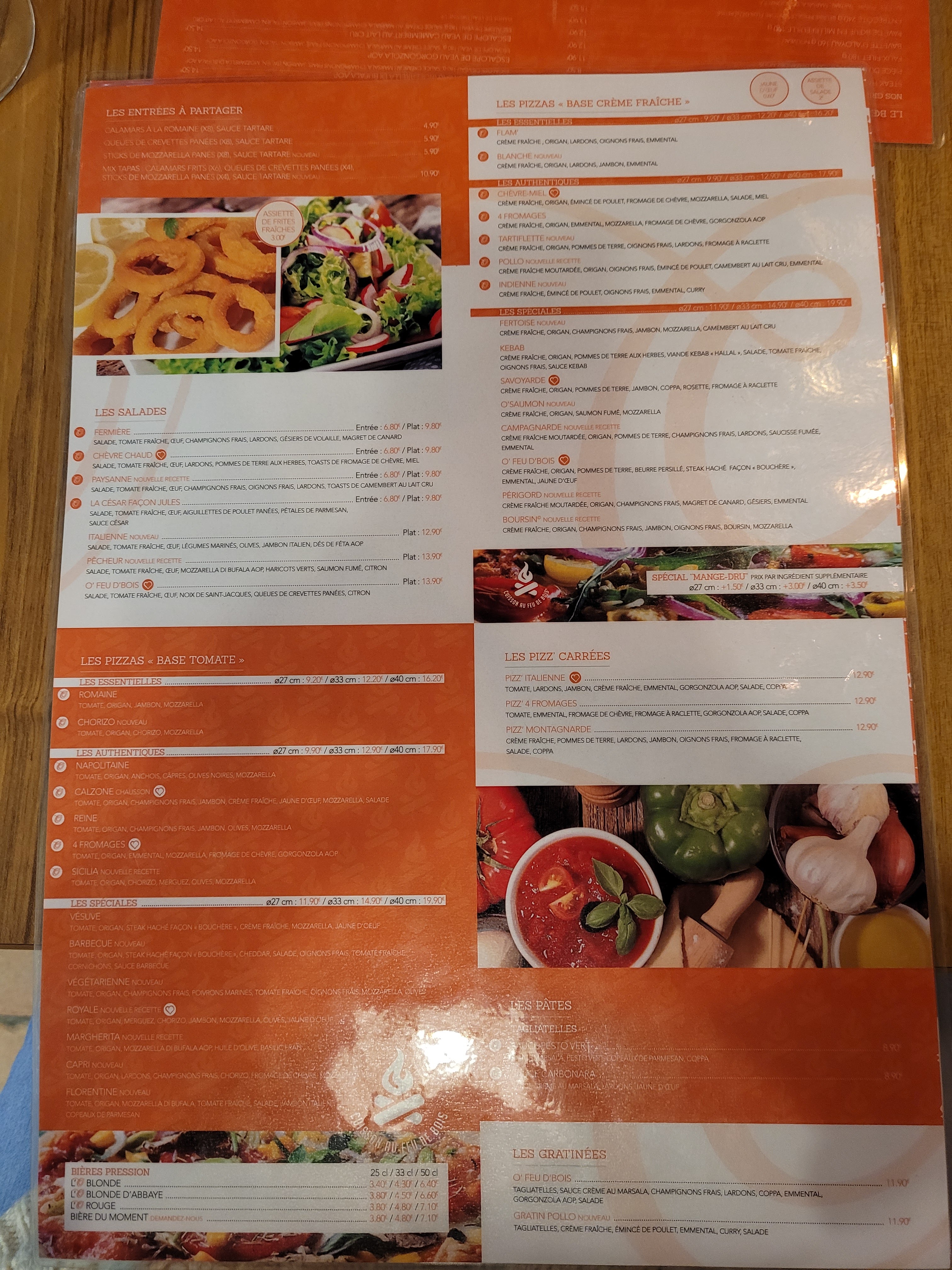 Un accueil chaleureux , une bonne ambiance , du choix , juste qu hier soir , déçue du peu de garniture sur la pizza barbecue ( sans sauce barbecue je précise ), peu de viande hachée , par contre trop de sauce tomate ( dommage je ne l ai pas prise en photo !) 3 serveurs ont bien entendu mon mécontentement et qu ils allaient en faire part au gérant afin de revoir la fiche technique de cette recette . J espère bien revenir et retrouver cette pizza comme je l ai connue auparavant. Bonne continuation à tous , et oui bravo aussi pour le nombre de serveurs sans compter en cuisine!