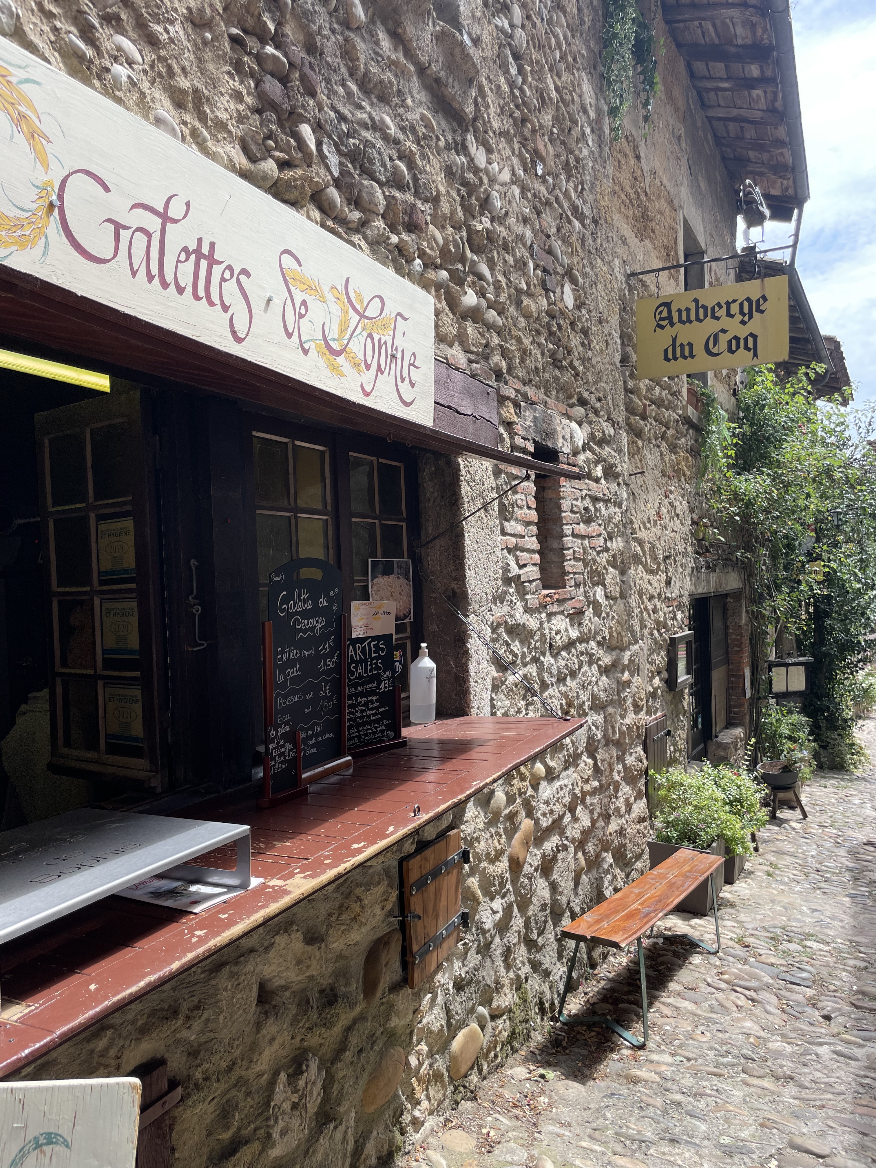 Pérouges classé parmi les plus beaux villages de France. Vous y êtes dans la jolie cité médiévale, maintenant le casse-tête : où dénicher la meilleure galette qualité prix ?! Rendez-vous à Ô Galette de Sophie ! Ne vous affolez pas pour l'attente de la préparation de votre galette (pizza sublimée, savoureuse et surprenante avec les produits locaux). L'artisan est qualifié(e), elle vous dira quand votre galette sera prête, et en attendant... arpentez donc les ruelles !!! 🤗
