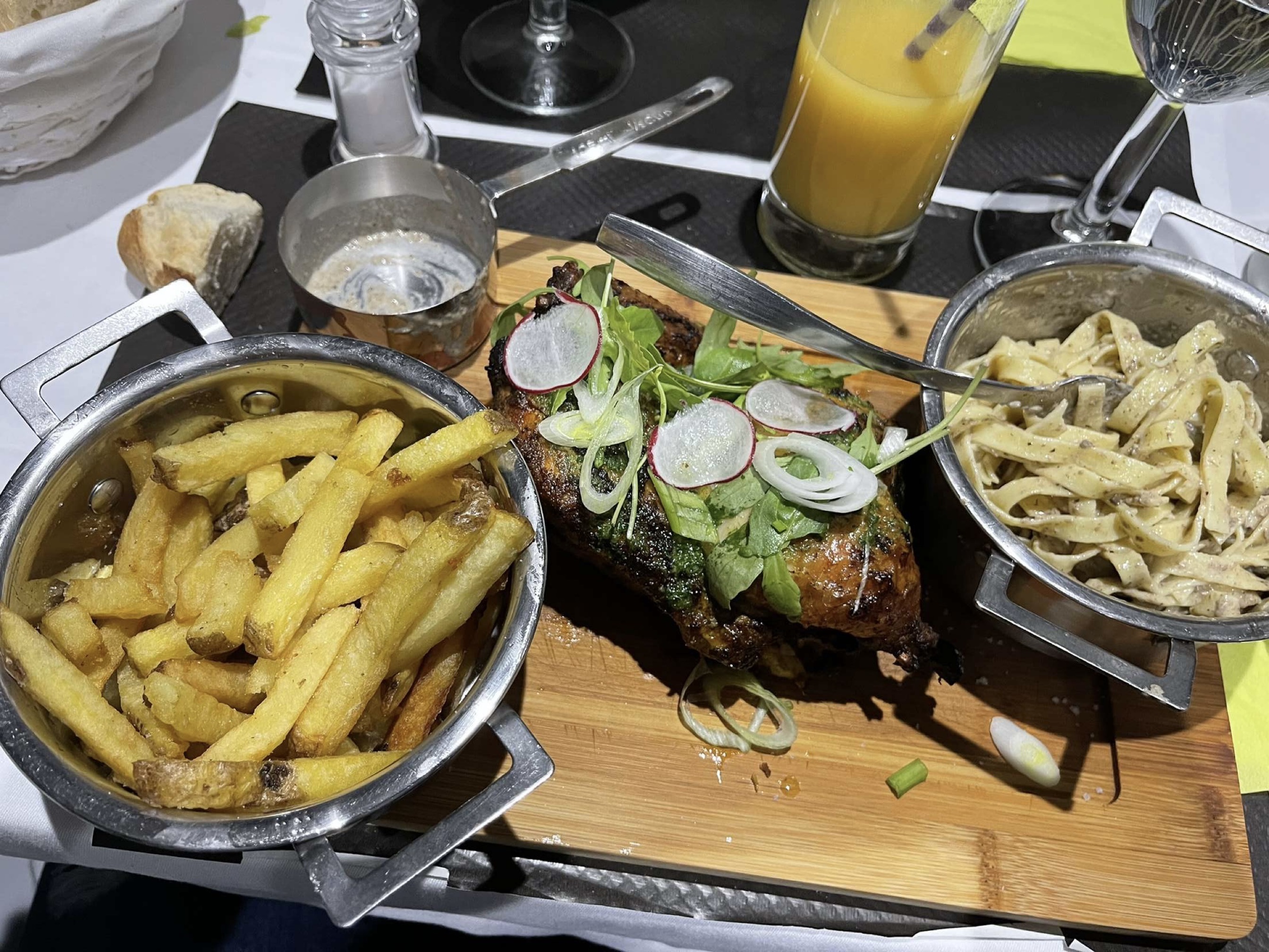 On a bien manger. Les assiettes sont bien charger. Très très bon. Je recommande à 100%. Le personnel est très accueillant, il te mette à l aise direct. On a bien rigoler avec les personnes. Et bravo au cuisinier.