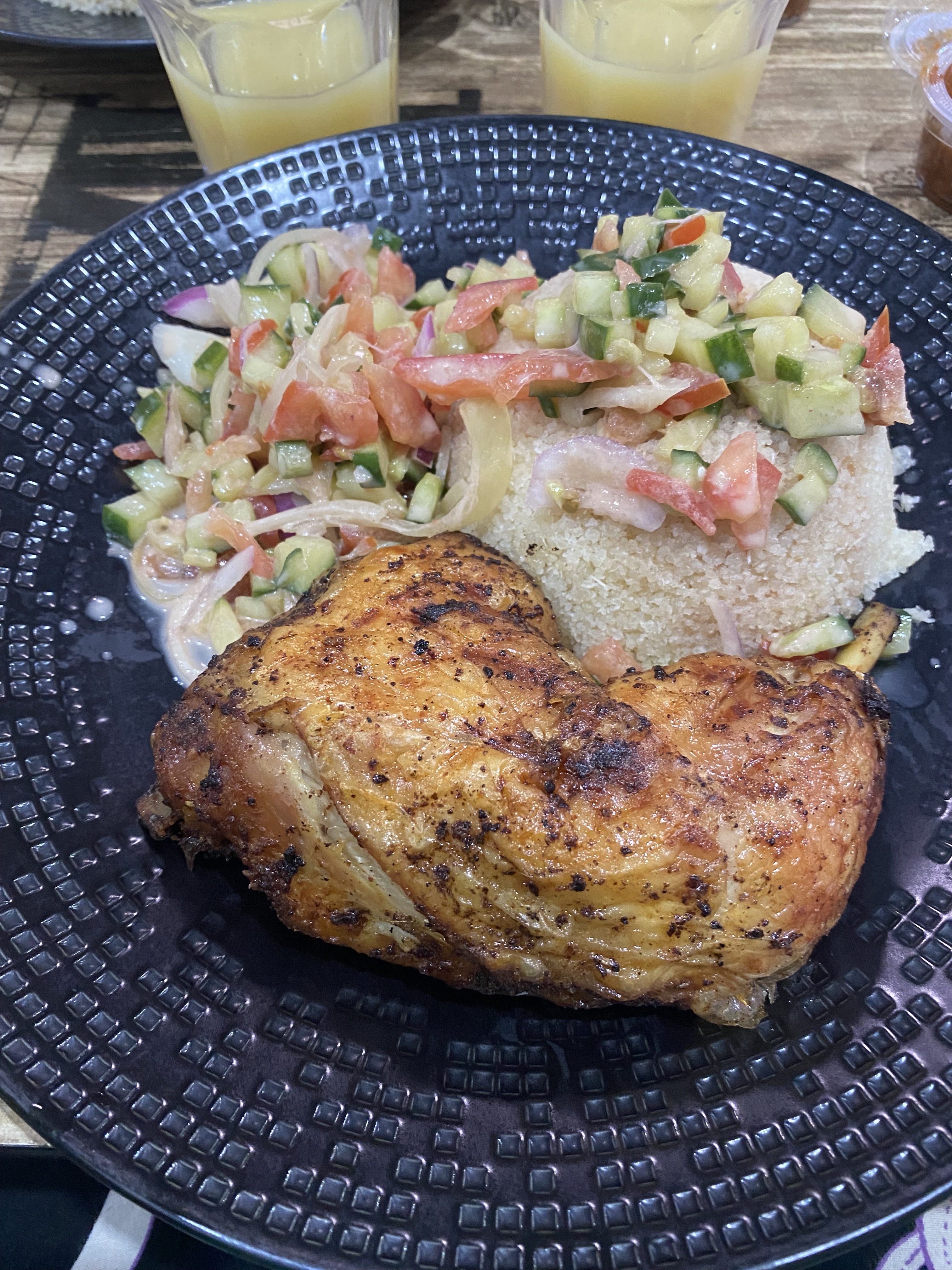 MashAllah, accueil parfait, poulet yassa succulent , bissap un peu trop sucre a mon gout mais pas grave et frite patate douce pas trop frit sinon au top avec la brochette de poulet braisé , mais 18 euros l'agneau un peu chere pour ce que c'est