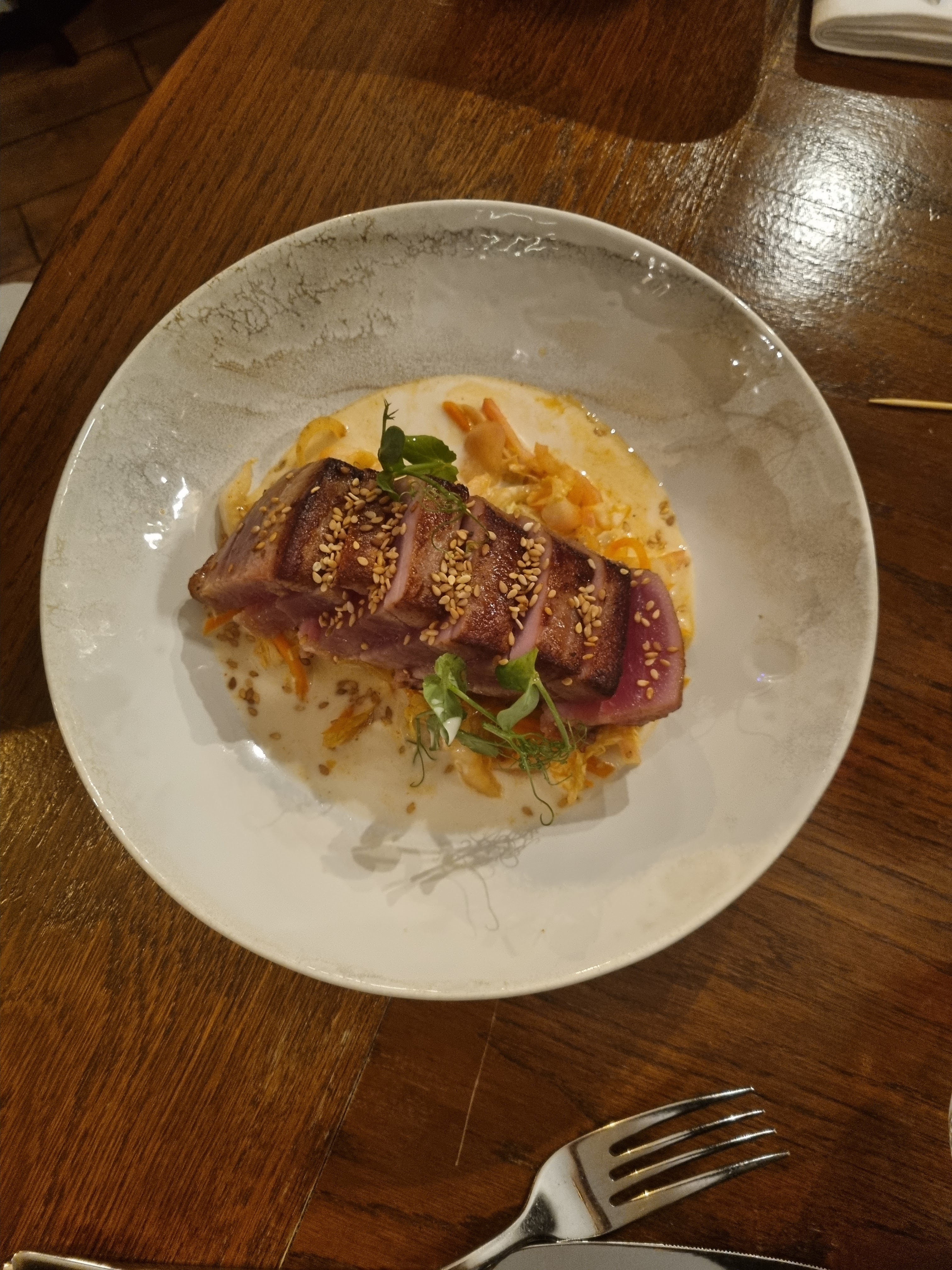Petit restaurant avec une déco sympa et agréable, serveur parfait, pas envahissant tout en étant la des qu’il le faut, cuisine raffinée avec des épices / assaisonnements originaux et très bons