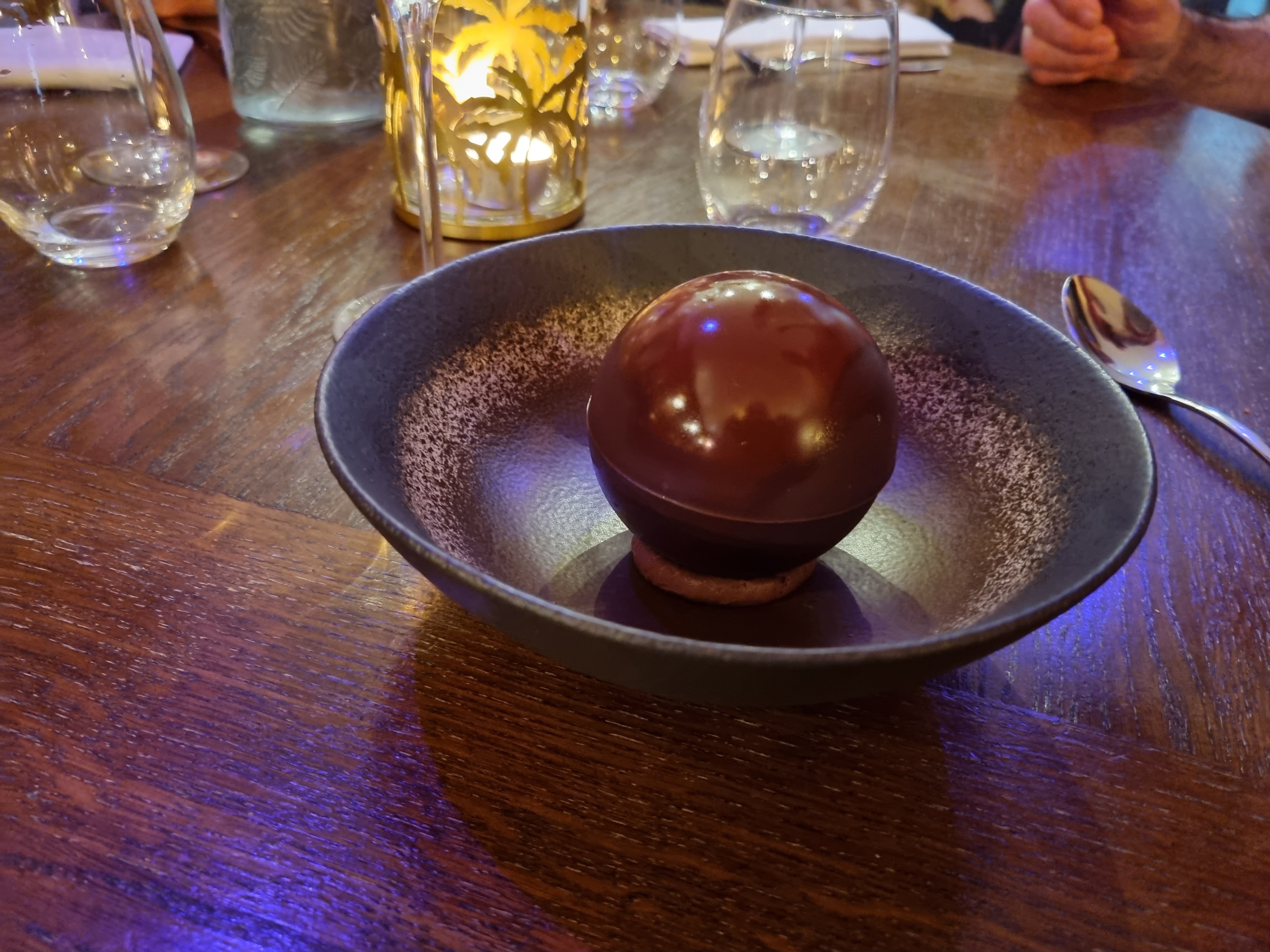 Cuisine très fine. Plus qu’une découverte, une adresse incontournable qui restera dans nos esprits. Ceviche de Daurade à tomber par terre.Le couscous avec une présentation qui n’est pas banal, mérite vraiment le détour. Que dire du dessert Le Globe , sphere chocolat ….. Le Chef et la personne en salle ont pris le temps d’échanger avec nous à la fin du repas. Génial, continuez ainsi, nous reviendrons