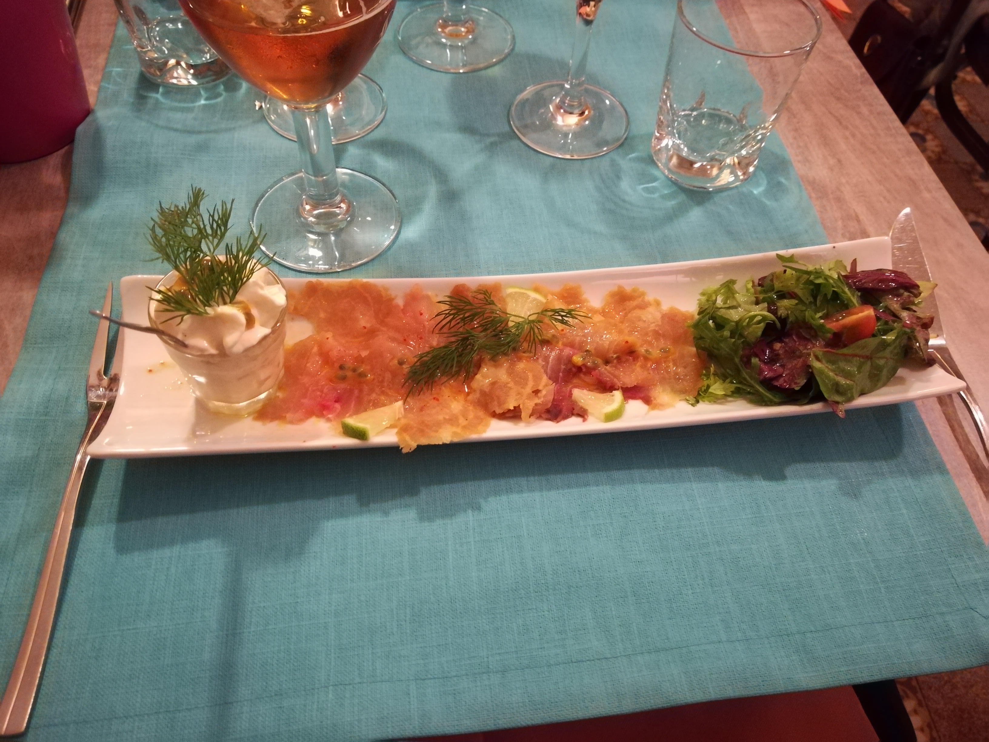 Très franchement, je vous conseille ce restaurant, chef maître restaurateur et cela est mérité!!! Un tiramisu melon au pineau des Charentes à tomber par terre, un saumon mi-cuit, mi fumée incroyable et un baba charentais au cognac très savoureux !! Je vous conseille également le clafoutis aux nectarines et lavande qui vaut également le détour. Nous avon également goûté des cocktails très originaux tel que le Princesse Mama! Nous reviendrons l’année prochaine pour déguster de nouveaux plats avec grand plaisir