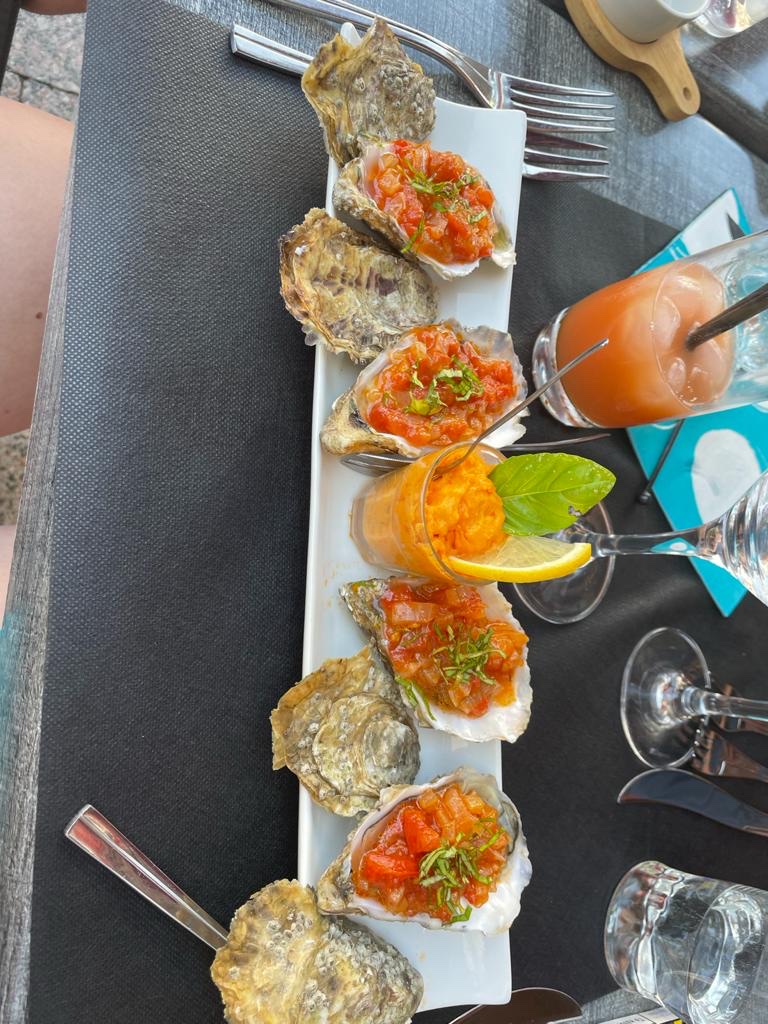 Excellent restaurant . Loin des restaurants attrape touristes. Un déjeuner divin avec des produits frais et hyper bien travaillés. Personnellement, je suggère le trio d huîtres. 😋. Un autre façon de déguster les huîtres. Une tuerie vraiment . Et mon mari s est régalé avec le baba charentais 😁. Nous recommandons à 100%.