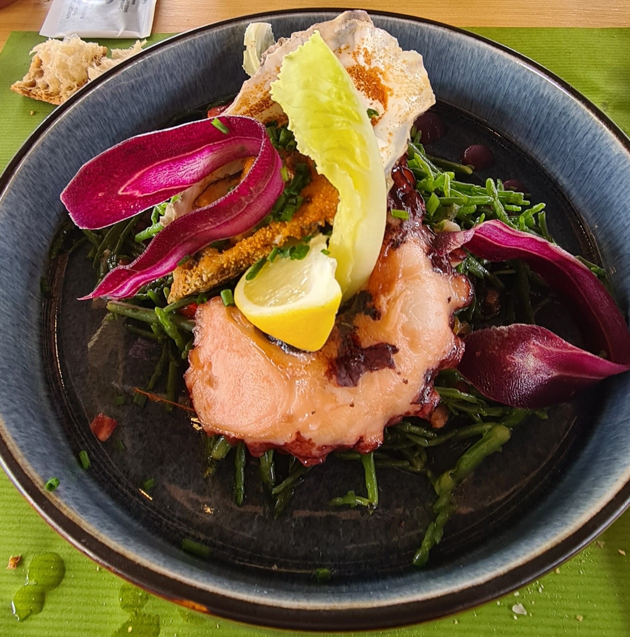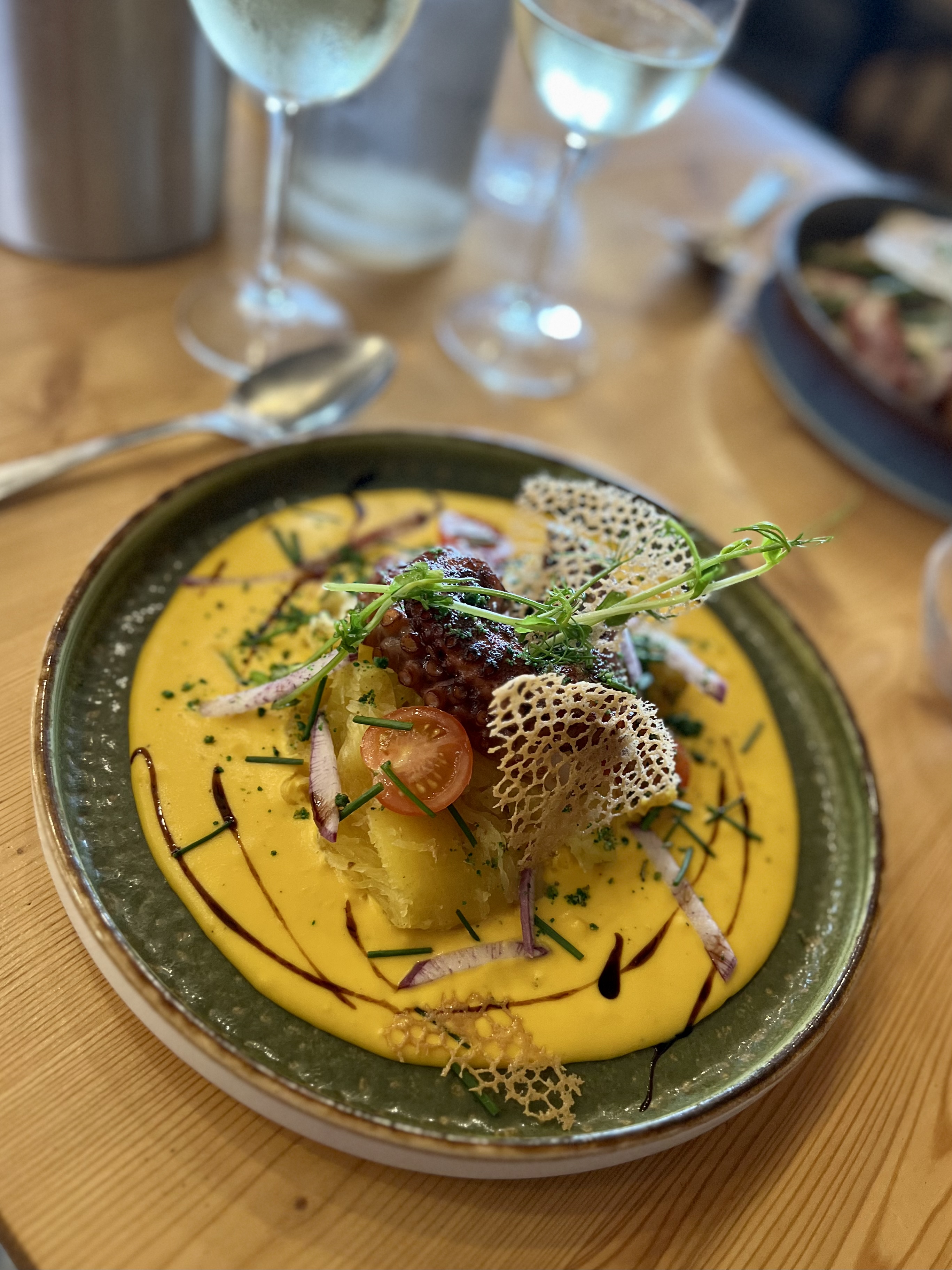 Déçu par le plat de poulpe, cuisson trop dure, petite quantité servie sur assiette.. Le temps entre deux plat étant trop long, nous avons écourté notre repas, c'est celà qui a gâcher notre soirée