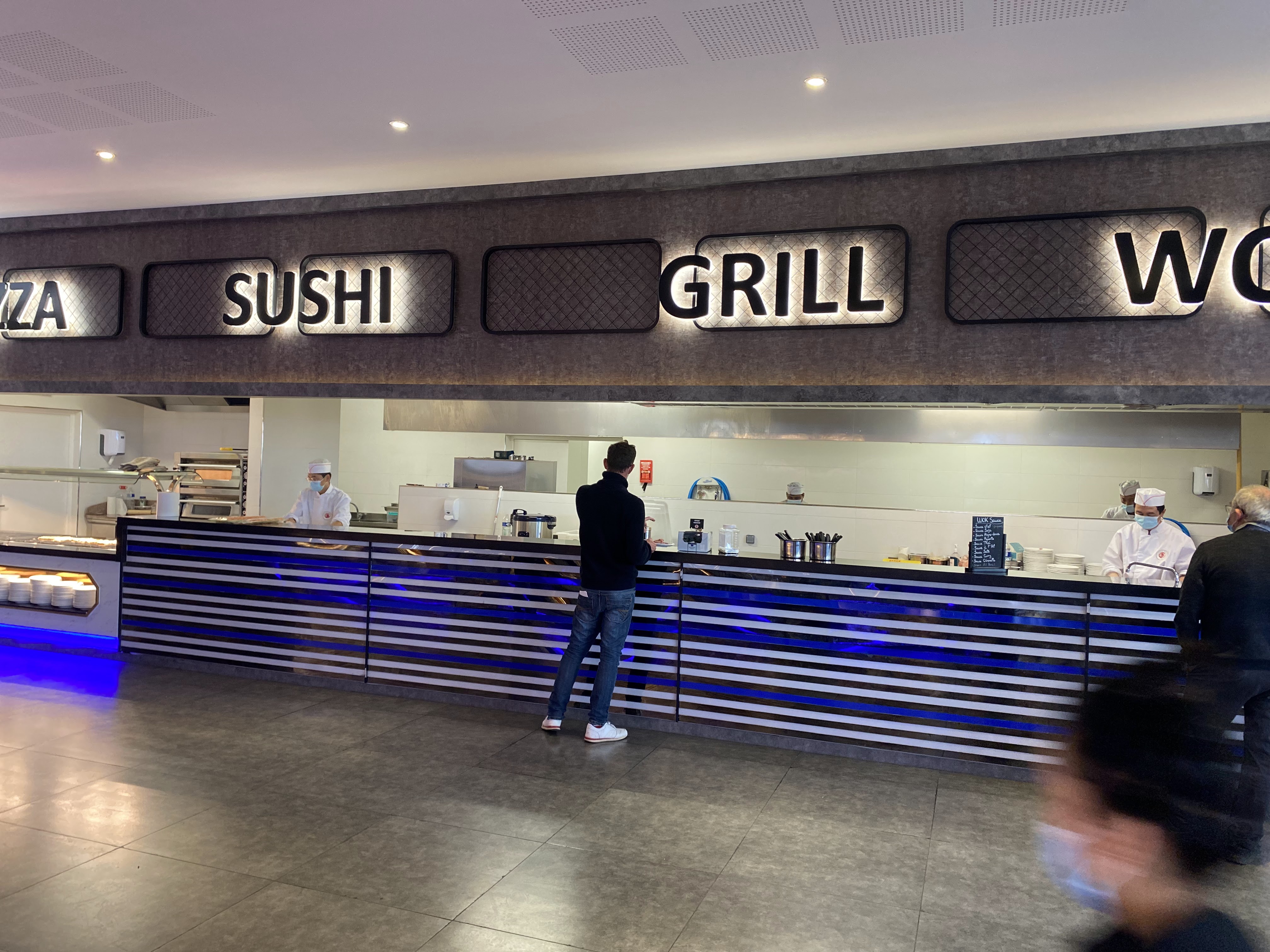 Nouveau buffet à volonté à Reims ! Allons voir ce qu’il s’y passe …. Déjà , une certitude, c’est un buffet XXL. C’est même le plus gros en terme de mobilier sur la ville. Ici, en dehors des traditionnelles plats asiatiques, vous y trouverez pizza, charcuteries , fromages, fruits de mer, gratins, etc… Le décor est agréable et moderne , dans des tons bleus, l’investissement de réhabilitation (ancien GIFI) est juste énorme ! L’accueil et le service est tel que l’on connaît dans tous les buffets à volonté , agréable, souriant, disponible, donc parfait ! Alors que les buffets asiatiques tentent de se diversifier et d’améliorer la qualité des produits de base, et de cuisiner plus leur produit, ici c’est industriel à fond ! Décongelé, précuit , en poudre, en conserve, sous vide, vous avez le choix du dégoût . Exemple de la Pizza , à la pâte à pain qui cartonne est juste infecte. Absolument aucun produit n’est frais ou fait maison. Très clairement la direction de ce buffet à volonté a décidé de rester dans ce qui était « normal » en 2010 lorsque les grands buffets sortaient de terre. À Reims, je connais 2 buffets de taille quasi identiques à prix égal qui travaillent sur du produit frais et cuisiné. Malgré tout, 13€40 en semaine pour un choix aussi vaste reste raisonnable pour une cantine . Le grand buffet aurait dû s’appeler « à la grande cantine. »