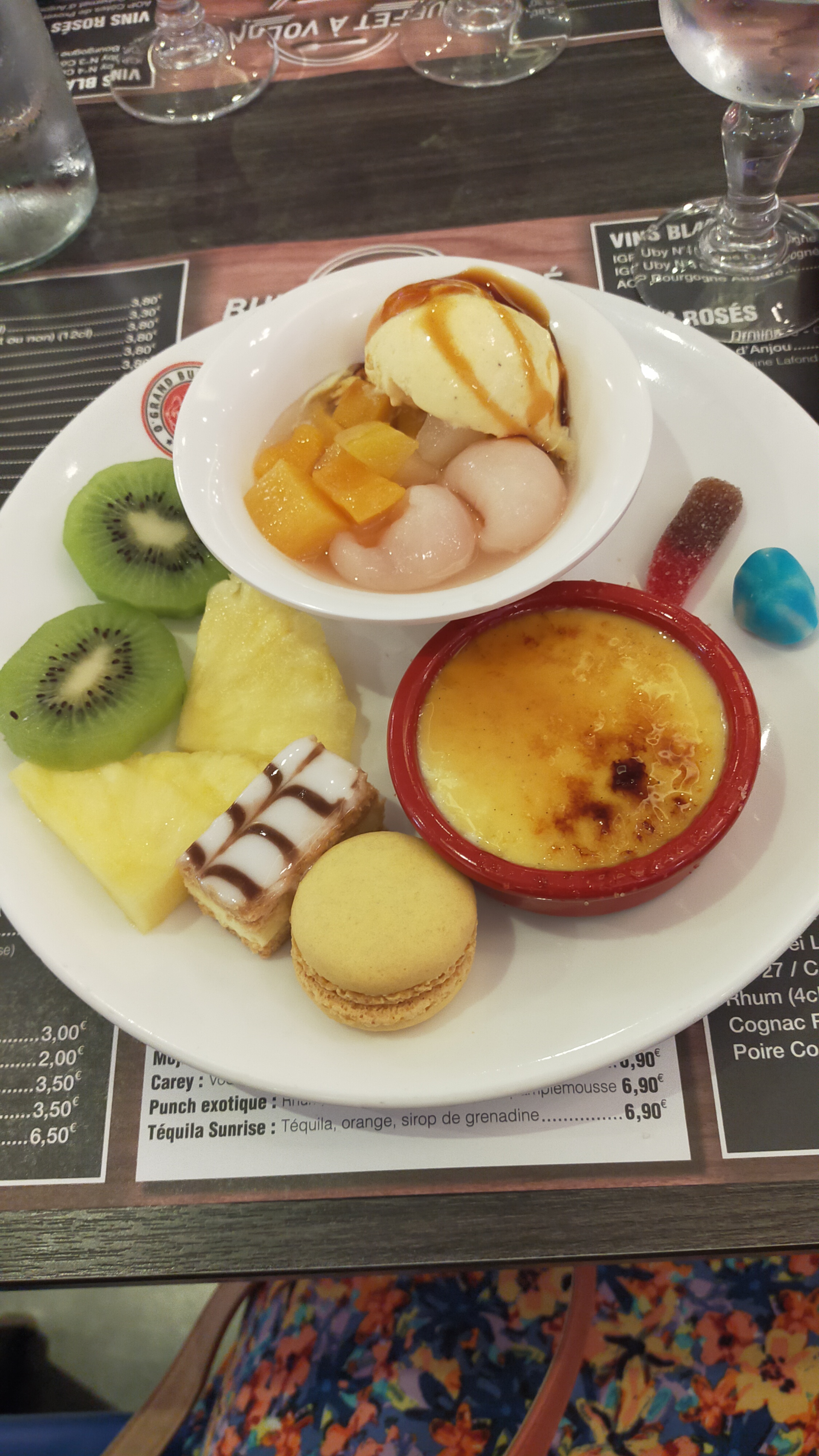 Très correcte sauf les escargots qui étaient sûrement de la rechauffe car complètement sec et croquant à 19h10. Pâtisserie médiocre quand même surtout les donuts infectes...