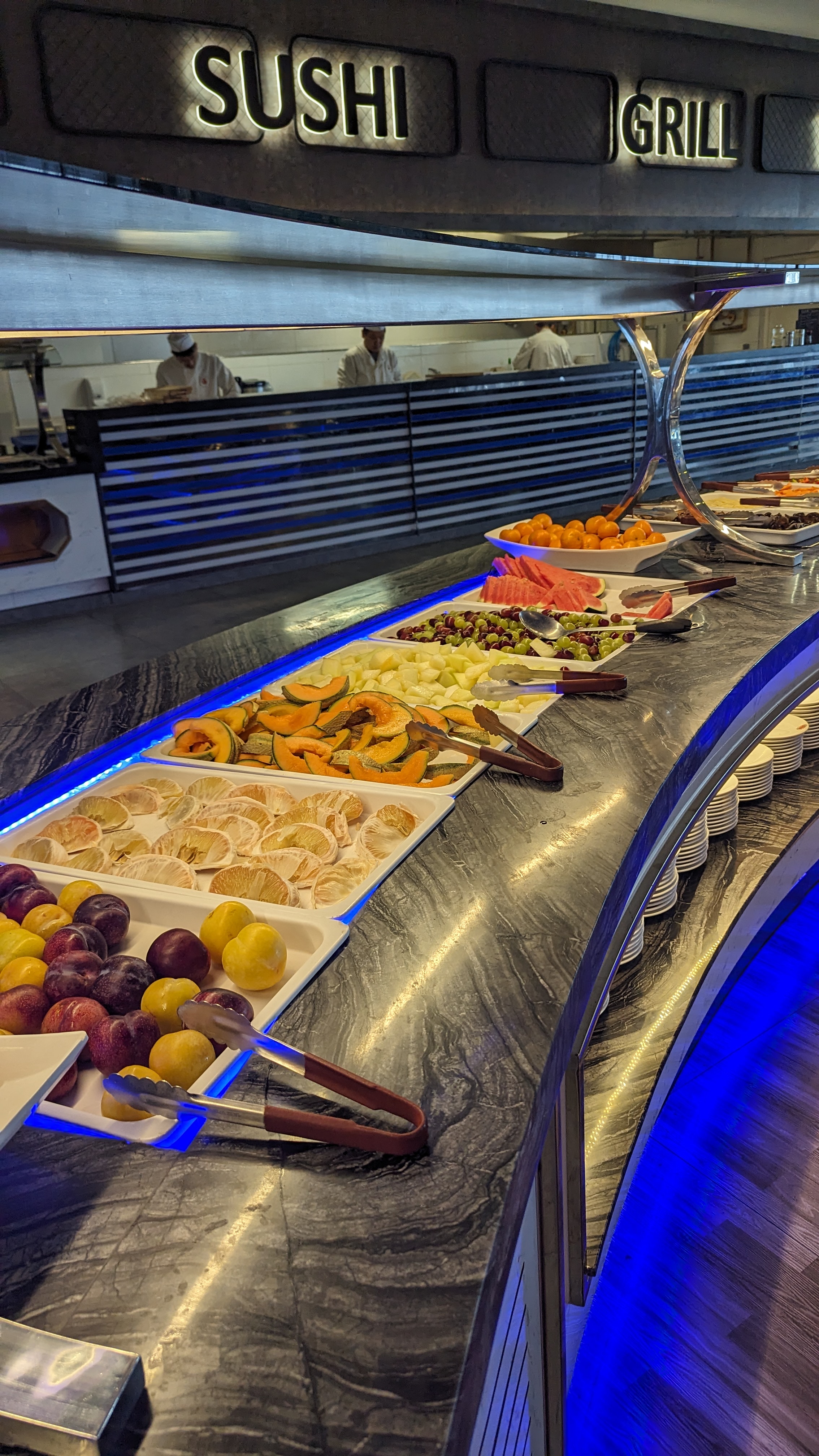 Beaucoup de choix malheureusement beaucoup de plats froids. Plutôt choisir les woks et viande à griller
