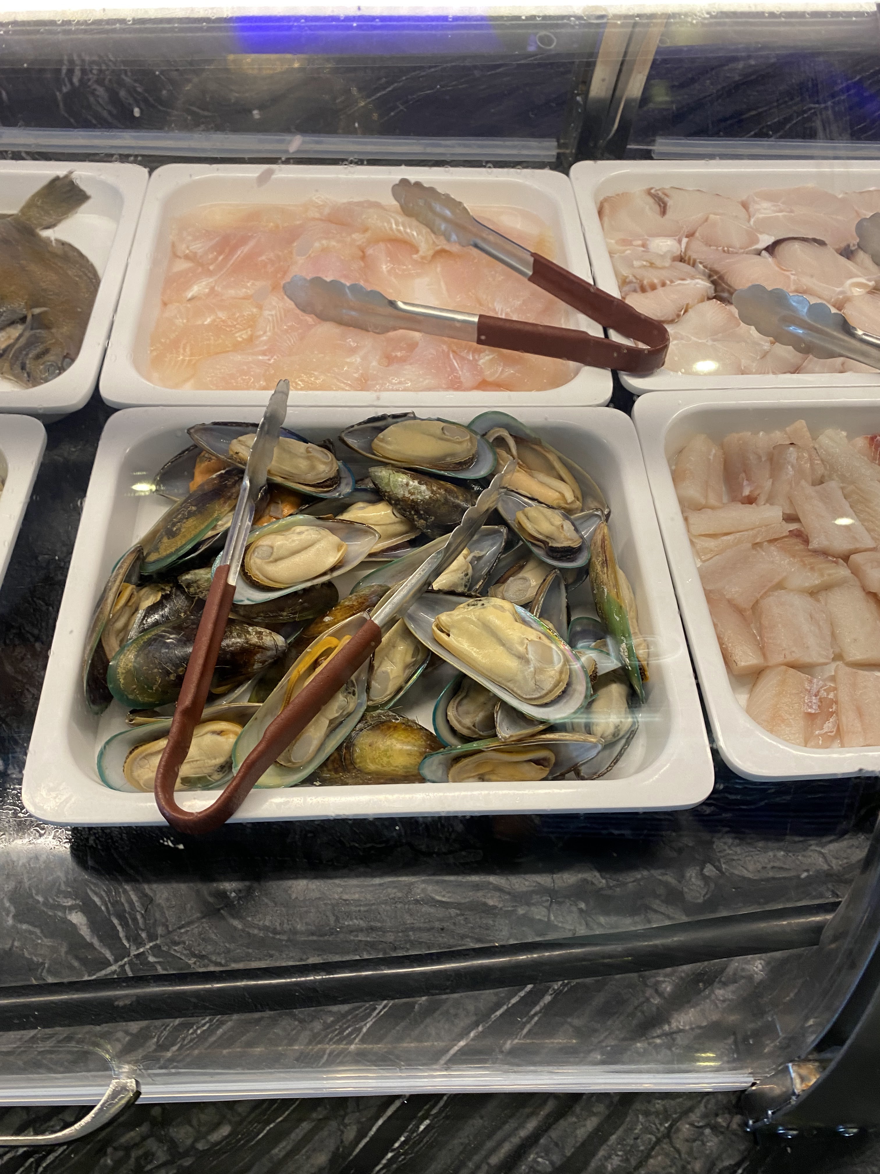Rien d'exceptionnel. Nems tiède enfin tout est en peine chaud . Le nems sont mous . Après être arrivé a table 5min ou un peu plus les plats sont froid. Le cuisinier complètement ailleurs qui sert les plats grillades woks a l'arrache. Mon wook le poisson de la bouillie. La sauce ail persil fade aucun goût. Le meilleurs les desserts ( surgelés) et les fruits exotiques. Trop de choix et la qualité pas top du tout. 👎👎👎