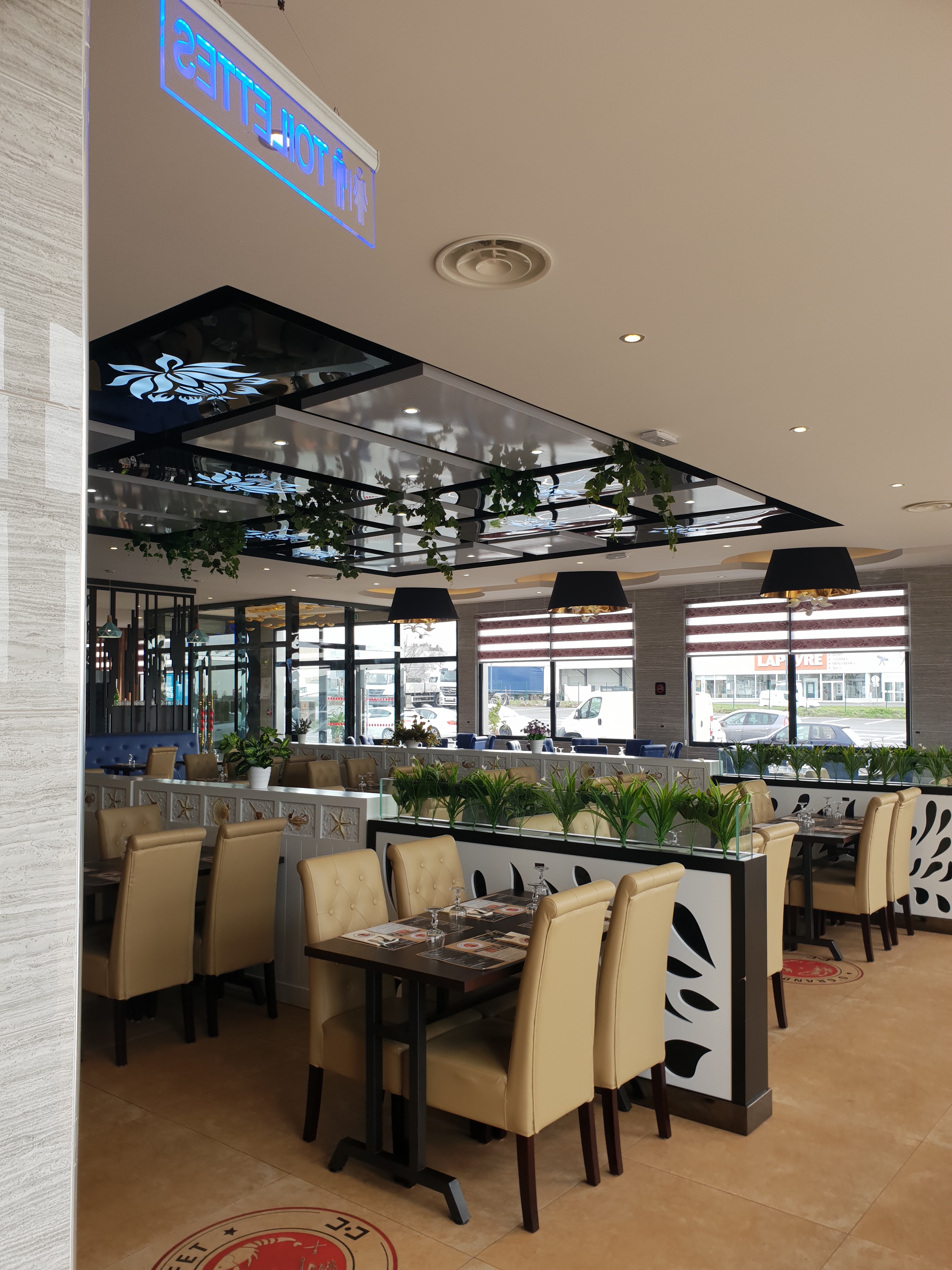 Beau restaurant assez spacieux mais je trouve que les tables sont trop serrées, ce n'est pas évident de circuler avec notre assiette. Par contre, le choix des plats est assez vaste mais dommage qu'il n'y ait pas de pancarte descriptive sur tous les plats car on ne sait pas ce que l'on mange mais on a bien mangé. Dans l'ensemble, les plats sont bons. Les boissons sont un peu chères (5,60€ un cocktail sans alcool). Pour le buffet, c'est 21,90€ pour les adultes et 10,90€ pour les enfants de plus de 6 ans.