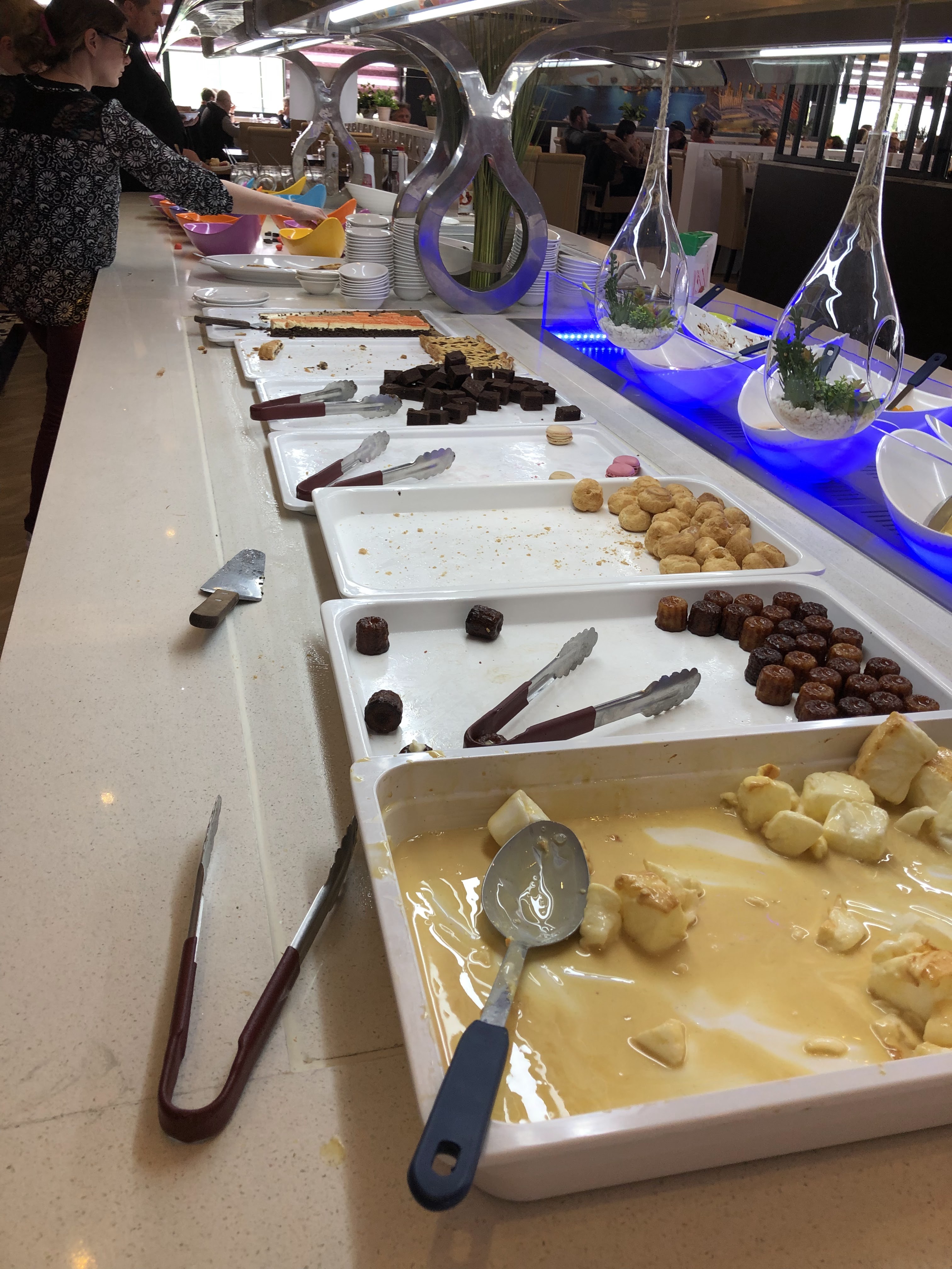 Grand choix de plat. Mais très gras et peu savoureux. La partie japonnais est juste lamentable. Par contre vous avez du choix en charcuterie dans un restaurant asiatique… Désert: très varié.