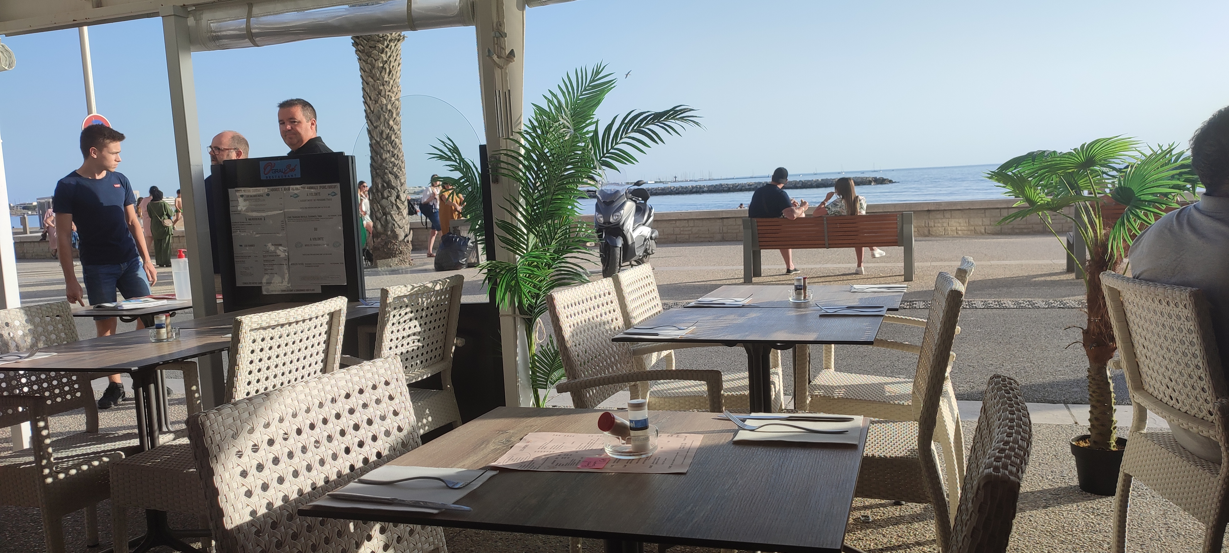 Très honnêtement, c'était une seconde chance qu'on leur donnait, la 1ere fois nous avions trouvé un ver dans leur fondant au chocolat. La seconde fois, on se dit que tout le monde mérite une 2eme chance et bien nous nous sommes trompés !! Autant les serveurs étaient superbes autant la patronne se prend pour on ne sais qui, un des restos les plus chères du grau du roi avec une cuisine semblable aux autres... Pour info, les chèques vacances et tickets resto ne sont pas acceptés.