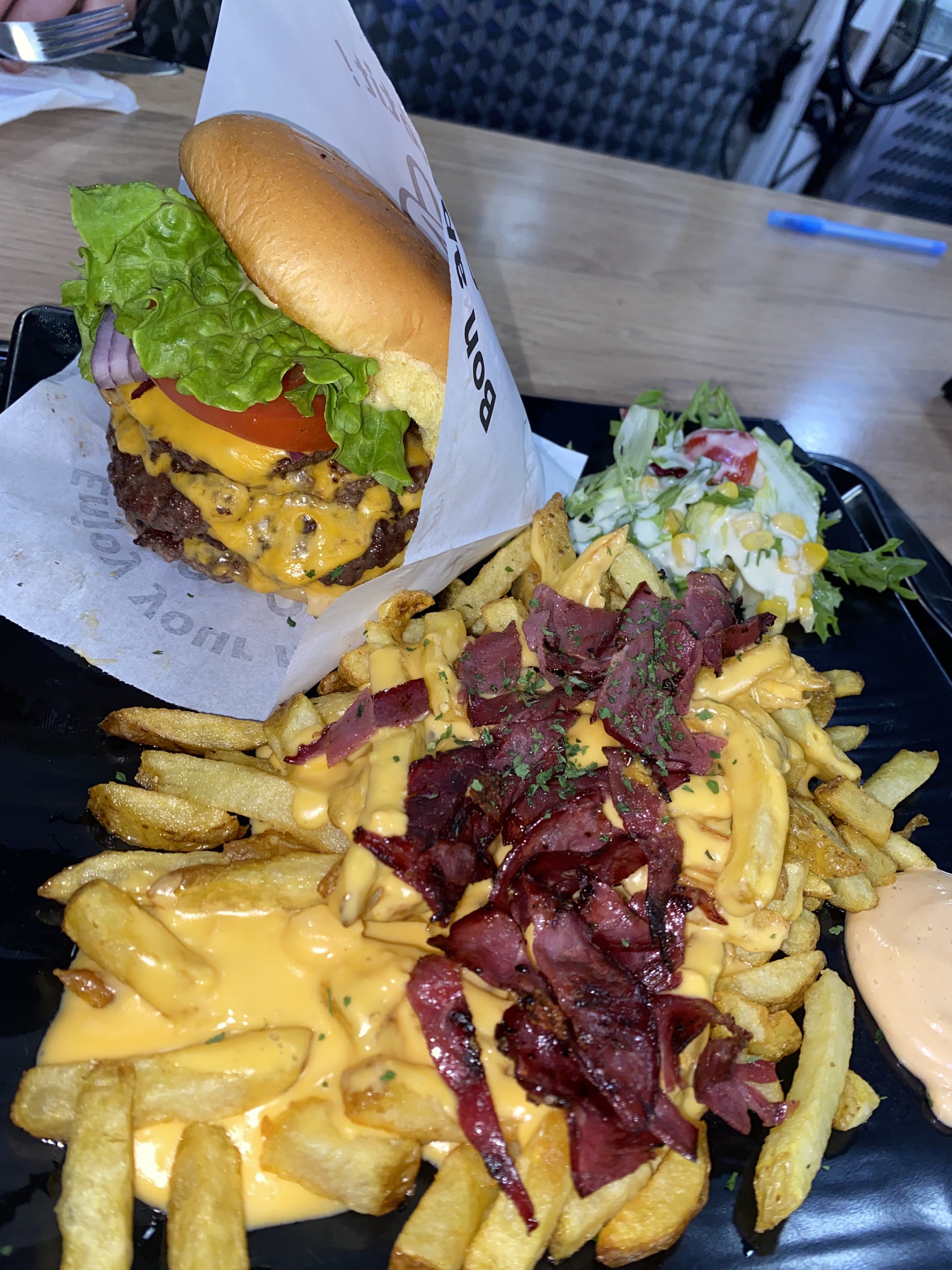 J’ai aujourd’hui tester les frites au cheddar bacon (qui arriver complètement renverser …) avec des pâtes à la bolognaise. Le cheddar n’est absolument pas du cheddar mais plutôt de la mayonnaise on dirait quant au bacon il est inexistant. La bolognaise des pâtes n’est pas fraîche et faites maison l’ont dirait de la bolognaise en boîte. Contenue du prix je suis très très déçu. Je ne recommande pas cette enseigne. C’est à fuir.