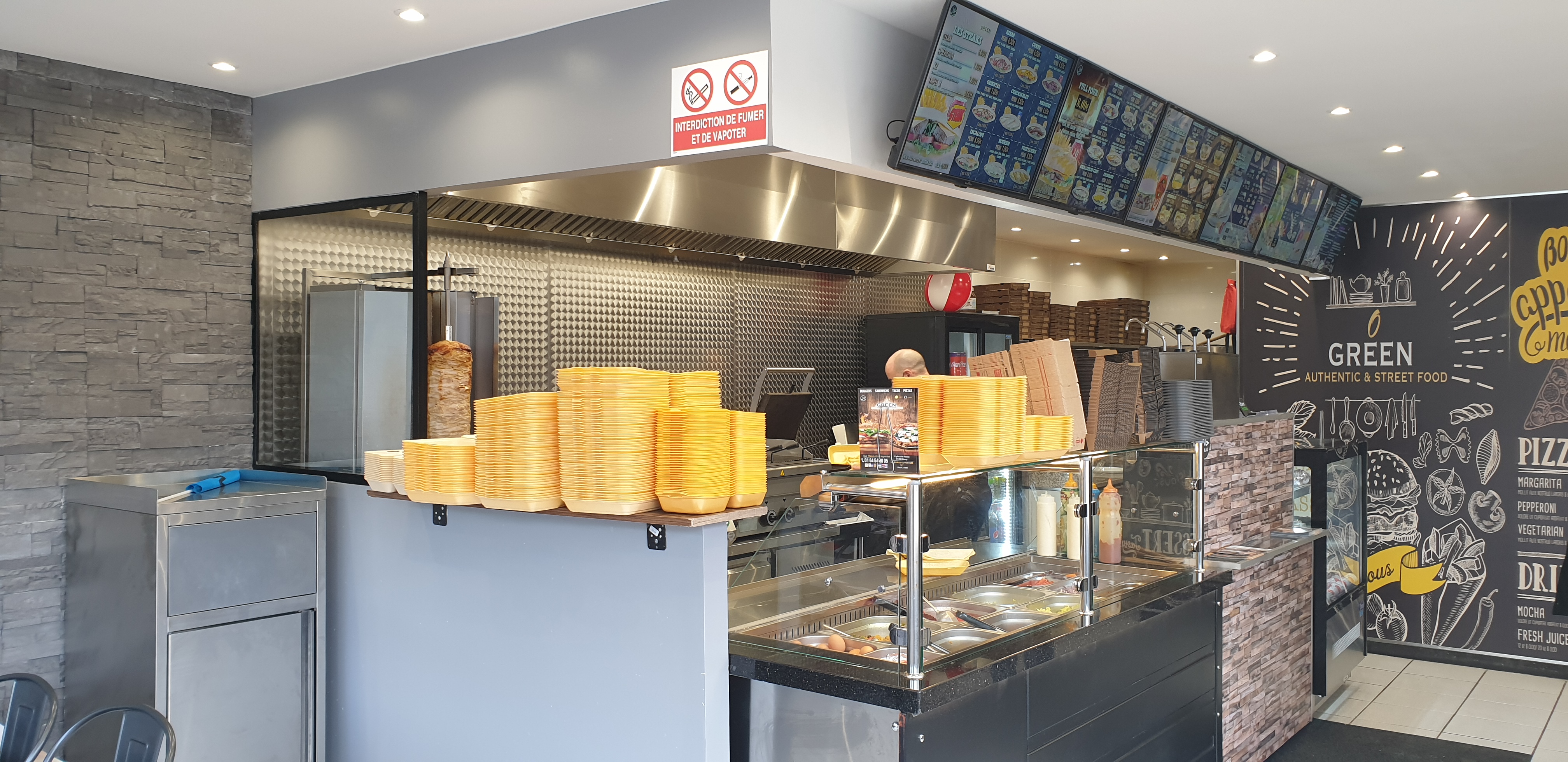 Lieux propre, lumineux, spacieux. Le personnel est accueillant et commerçant. Merci pour vos petites attentions. Pizzas, grec, tacos, hambugers, salades, desserts c'est déjà beaucoup. Le cheese, le 540 et les nuggets goûtés étaient bons. Bémol sur la salade Nordique, pas assez savoureuse a mon goûts et trop de salade. A bientôt