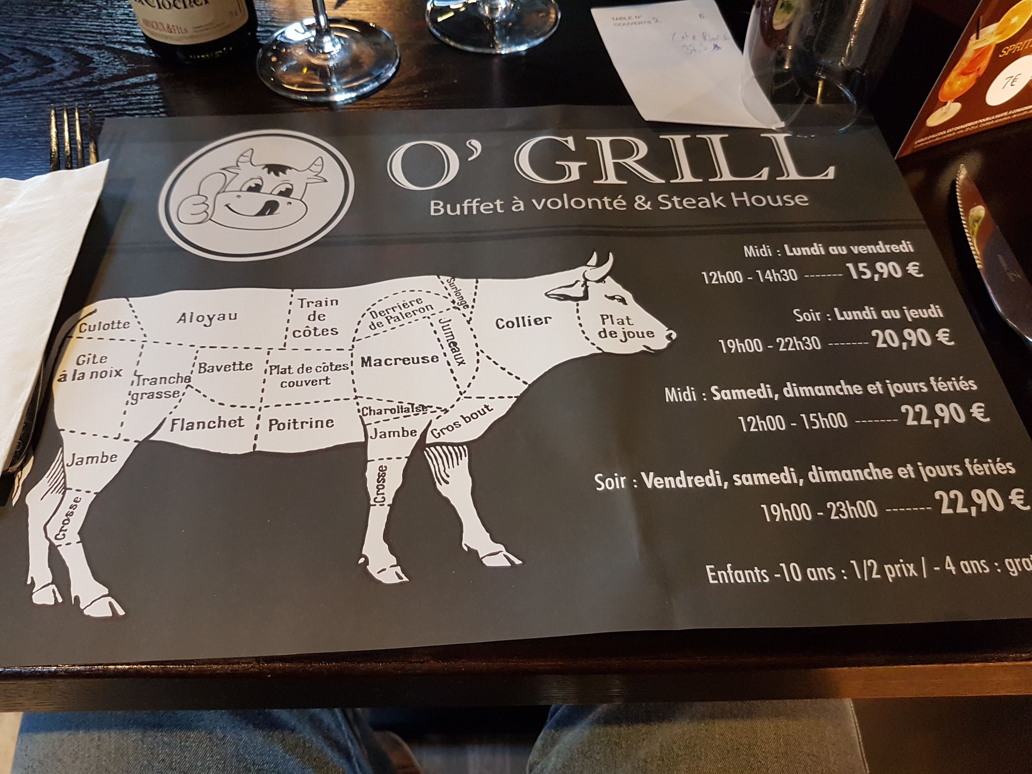 Nous sommes allés au O'Grill un soir de semaine pour un repas en famille. Restaurant type buffet à volonté. Cadre agréable, serveurs très sympathiques. Large choix d'entrées, de plats et de desserts. Les viandes proposées au grill sont vraiment de qualité.