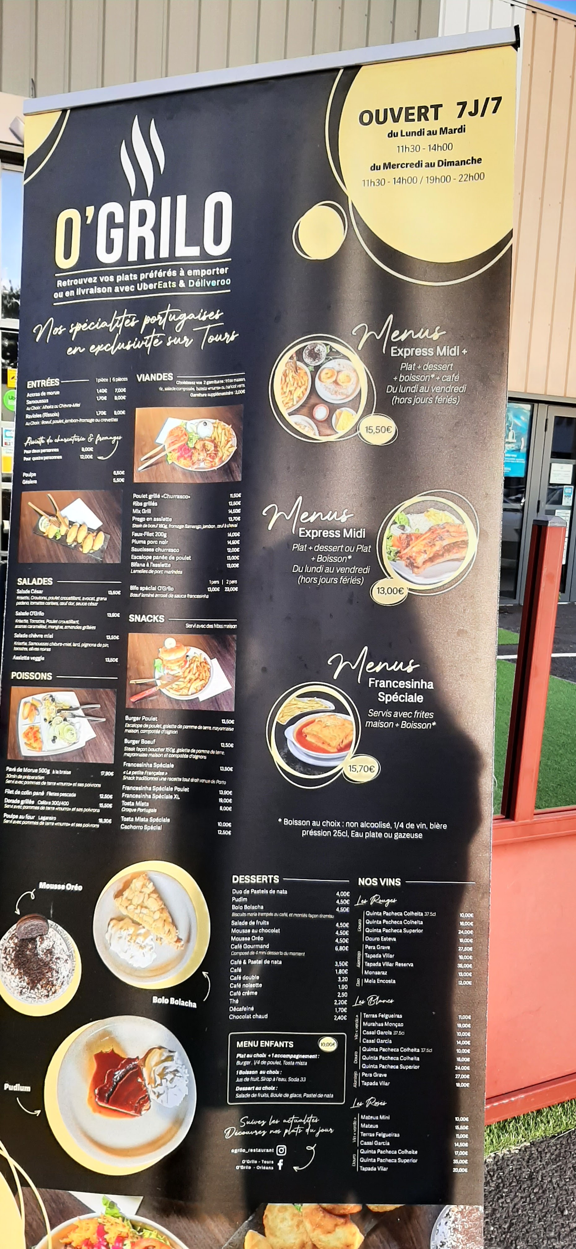 Restaurant, service, serveur, cuisinier, plat, carte, décoration tout était merveilleux. Si vous avez faim vous ressortirez de ce restaurant avec le ventre plein ! Les plats sont bon même à la livraison. Ce restaurant rappel les bonnes saveur du Portugal un plaisir ! Vous en avez pour votre argent. Je vous le recommande les yeux fermé !