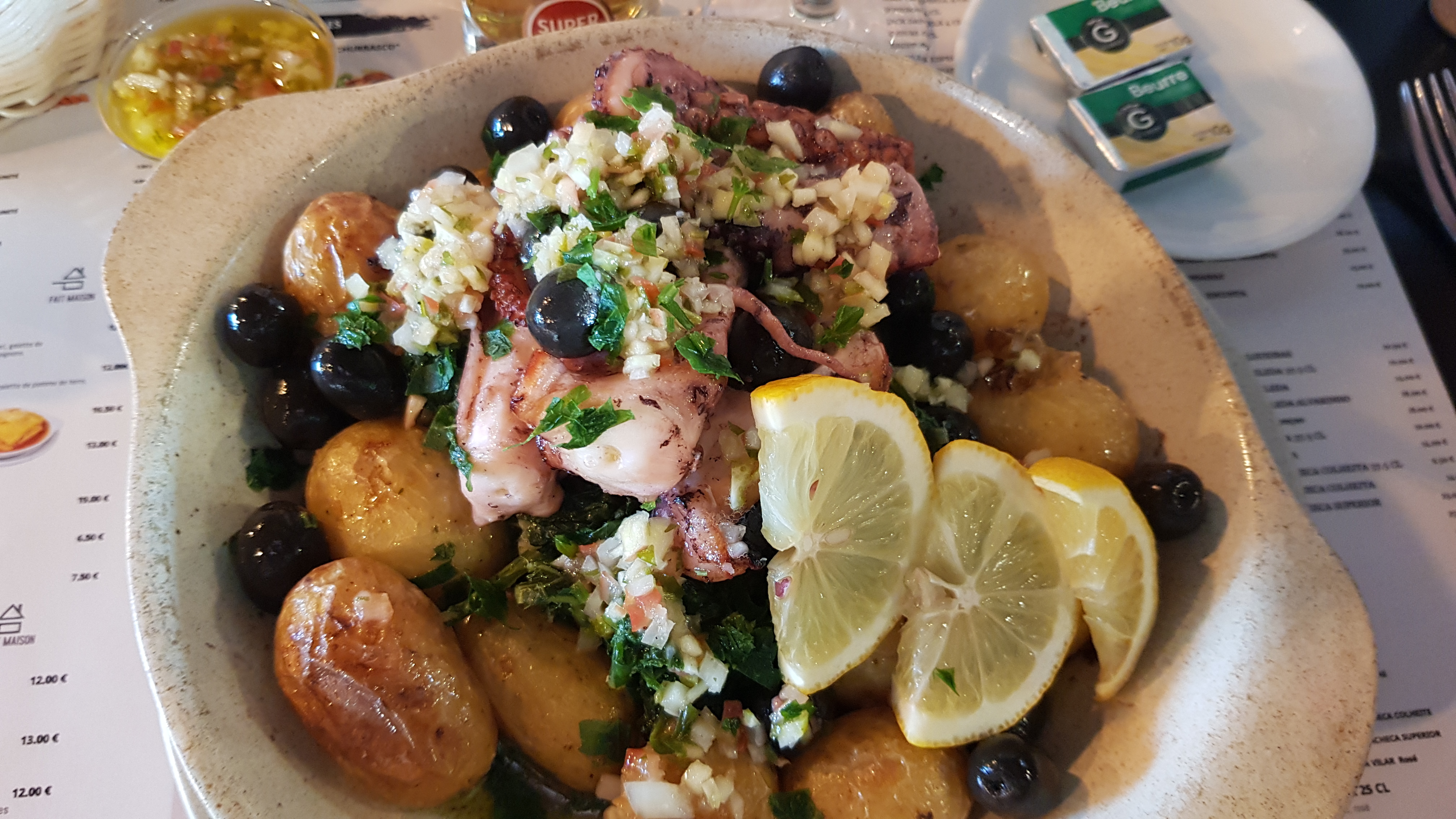Assiette assez copieuse. Le prix c'est dans le normal. On retrouve un peu le goût du Portugal. La plupart de la carte est du fait maison.