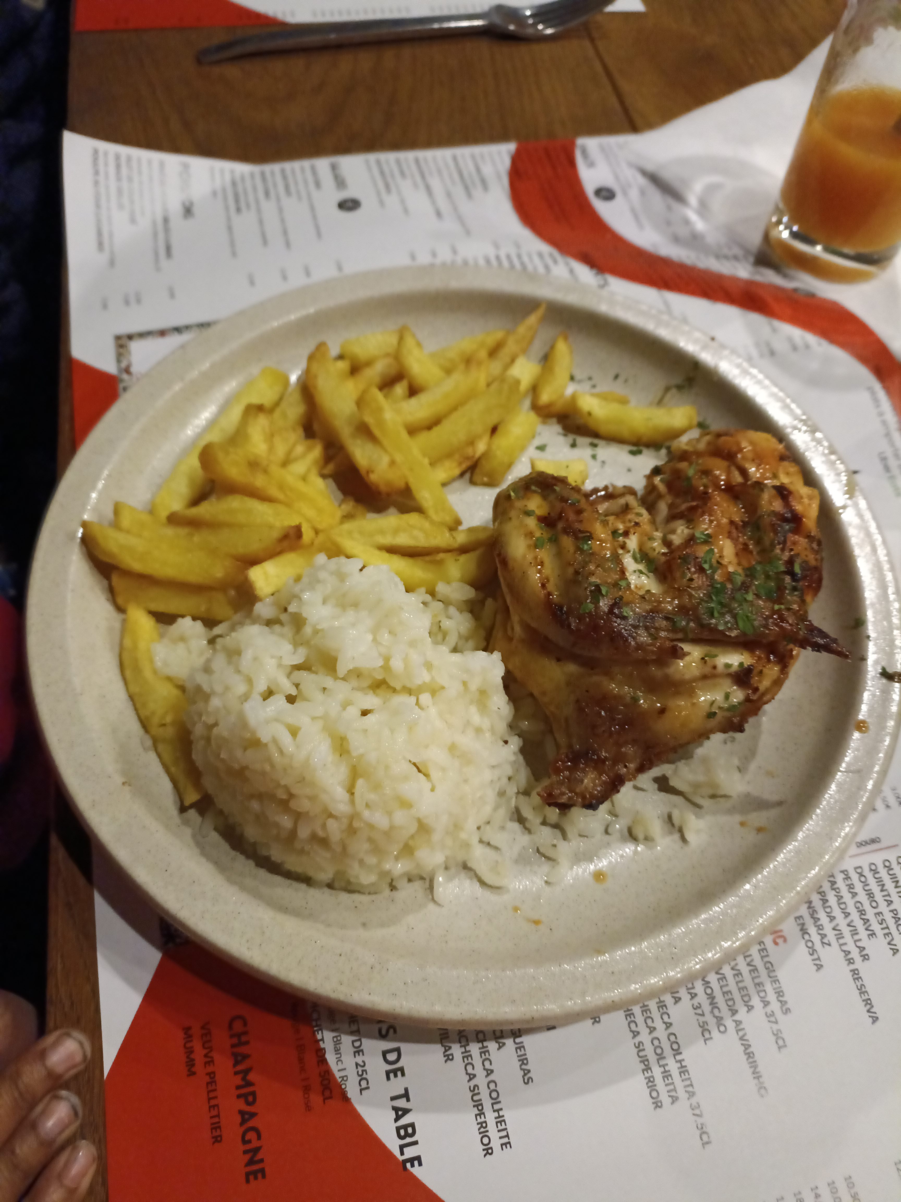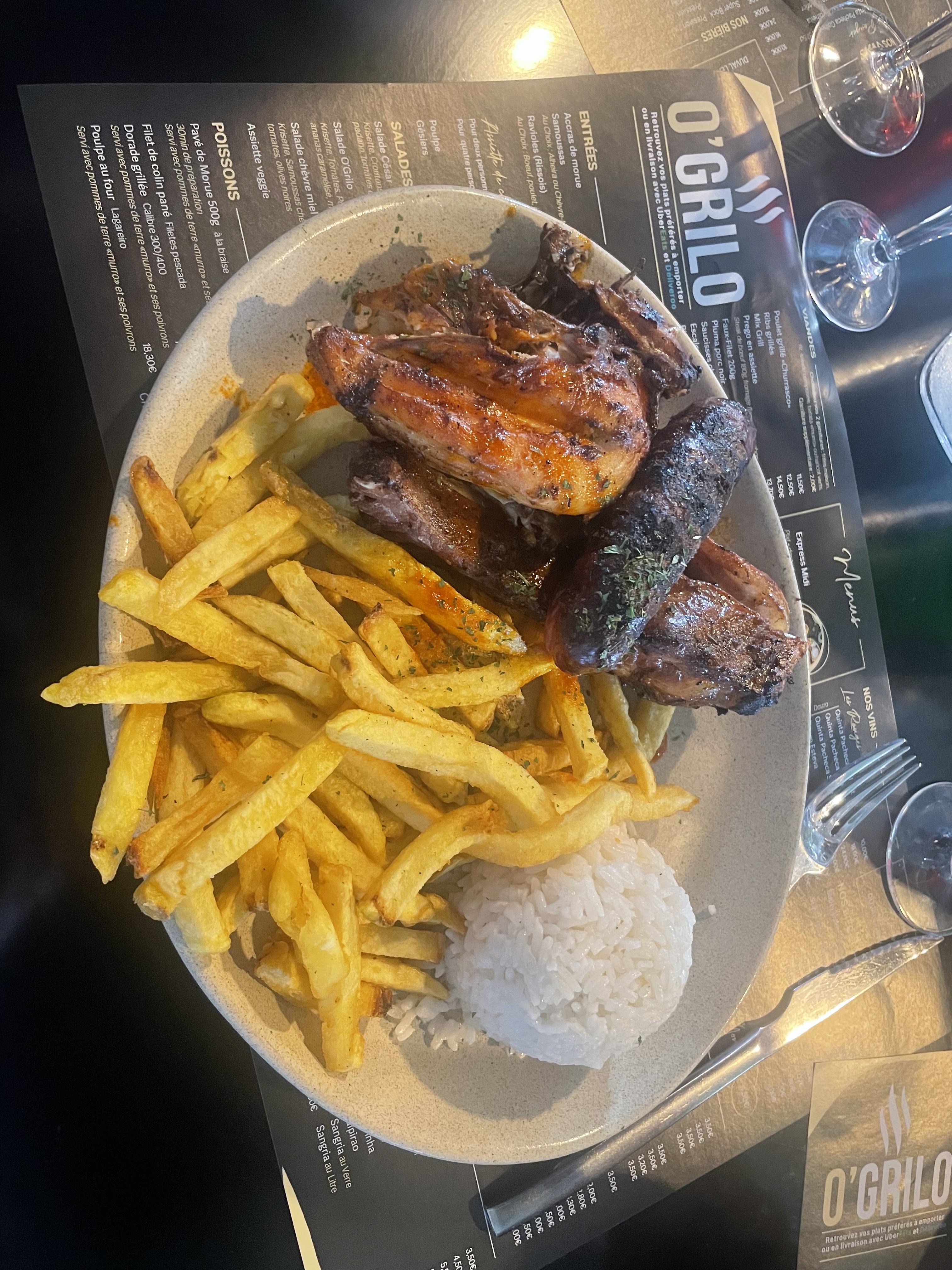 Ça fait 3 ans que je suis en france et c’est mon premier restaurant portugais, Je suis très satisfait de la livraison par Uber Eats cependant les plats don les frites étais pas assaisonner et certains morceaux de traver de porc on étais réchauffer plusieurs fois au four après un petit coup sur le gril pour donner un goût de ‘ CHURRASCO ‘ et les saucisses également.. C’était moyen mais il faut s'améliore sur certain points pour donner le vrai goût du Portugal au personne qui sont ici en France.