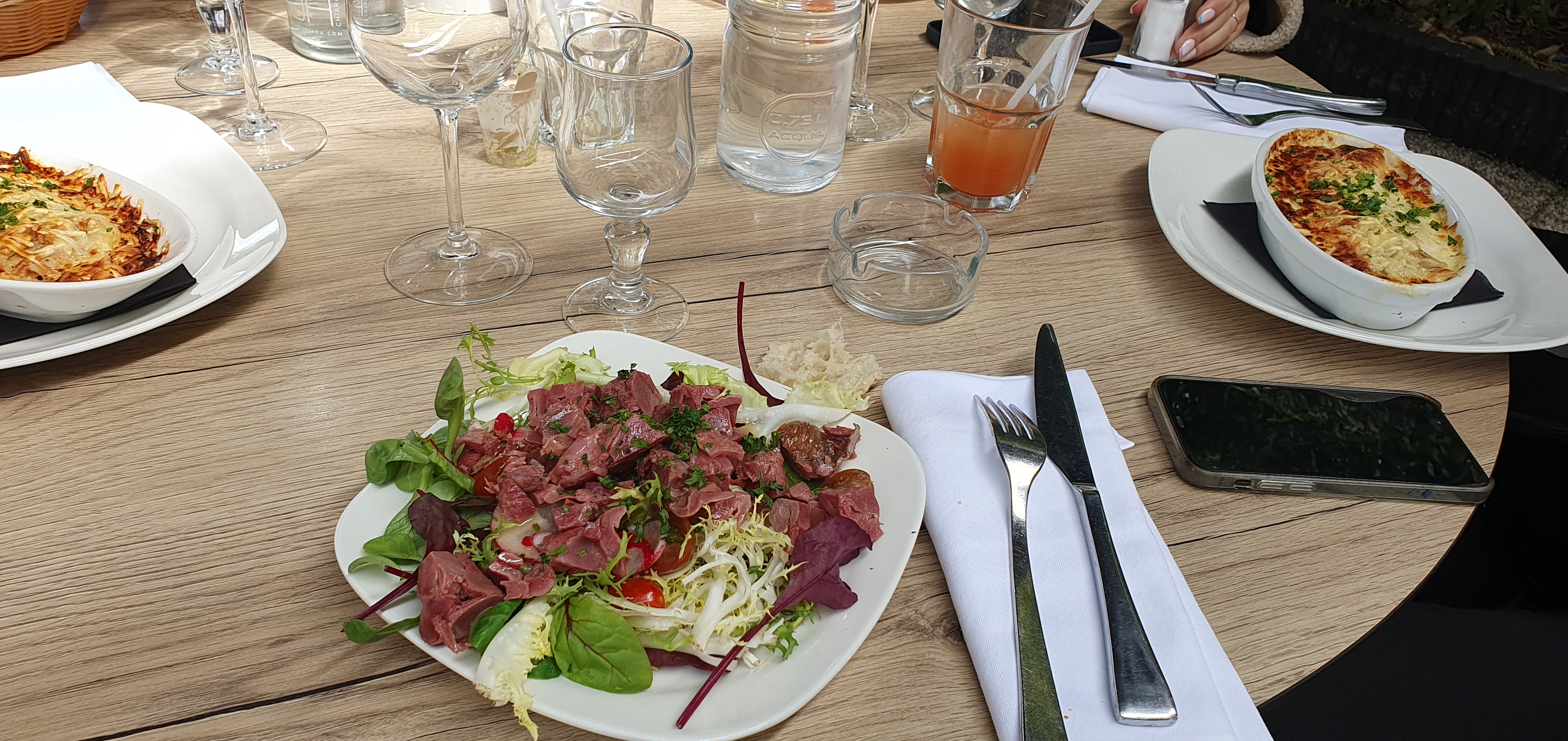 Très bon accueil et service peut être un peu trop rapide au démarrage..nous n'avions pas fini l'apero qu'on nous amenait déjà l'entrée, les plats sont bons et généreux sauf qu'attention ! La salade verte qui accompagnait nos gésiers était encore pleine de terre et ça se ressentait bien en la mangeant..goût terreux.. Et merci de mettre les grandes tablées loin ou dans une pièce séparee car celle à côté de nous était vraiment bruyante et indisciplinés..on ne s'entendait plus...Dommage..le cadre est vraiment sympa..pour le reste. Rien à redire...on reviendra quand même..