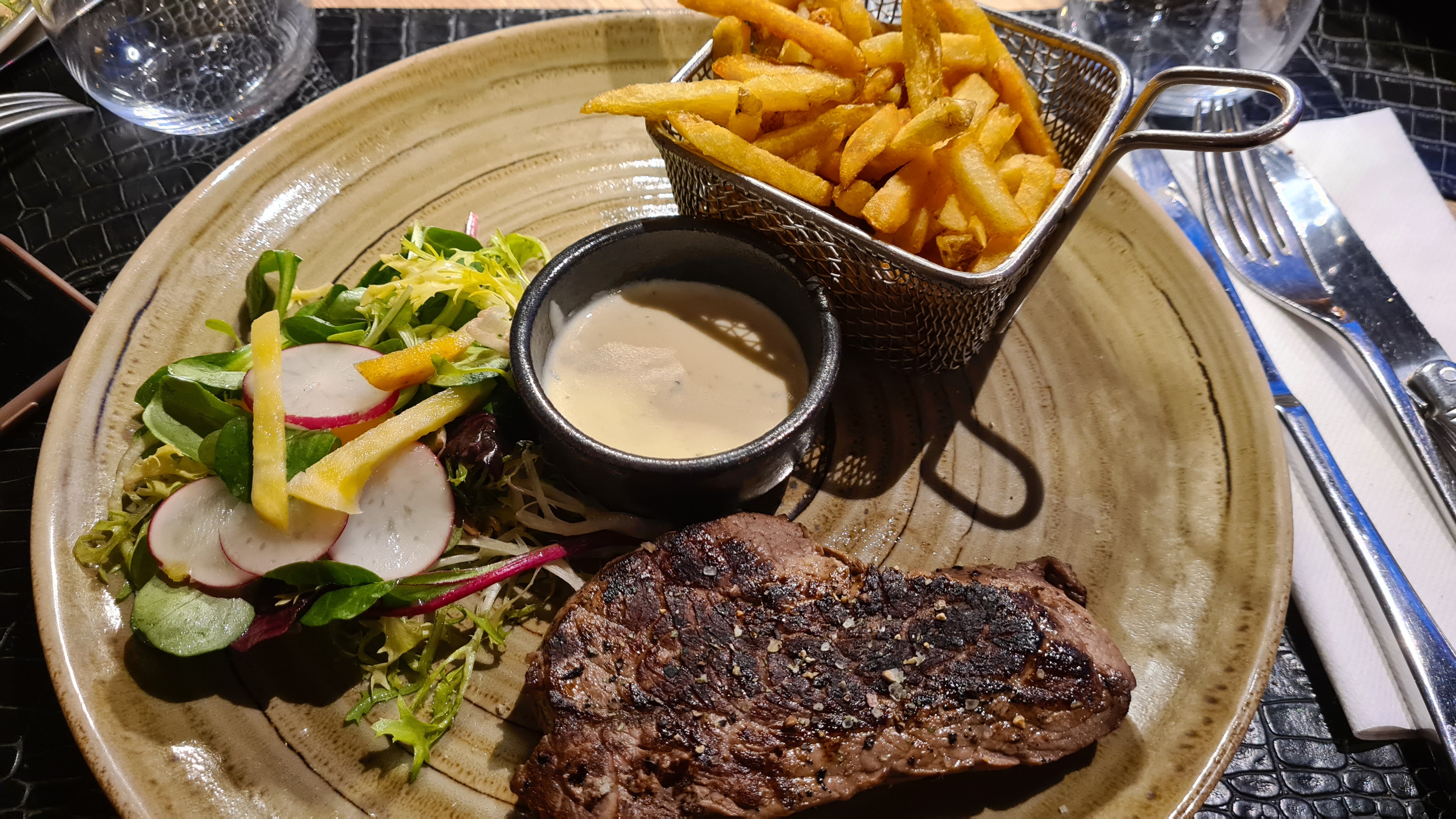 Cadre sympathique Ok par contre ce sont des américains ... 28 euros l'entrecôte de 300gr soit disant... Et honnêtement ce n'est pas un morceau de choix 🫤