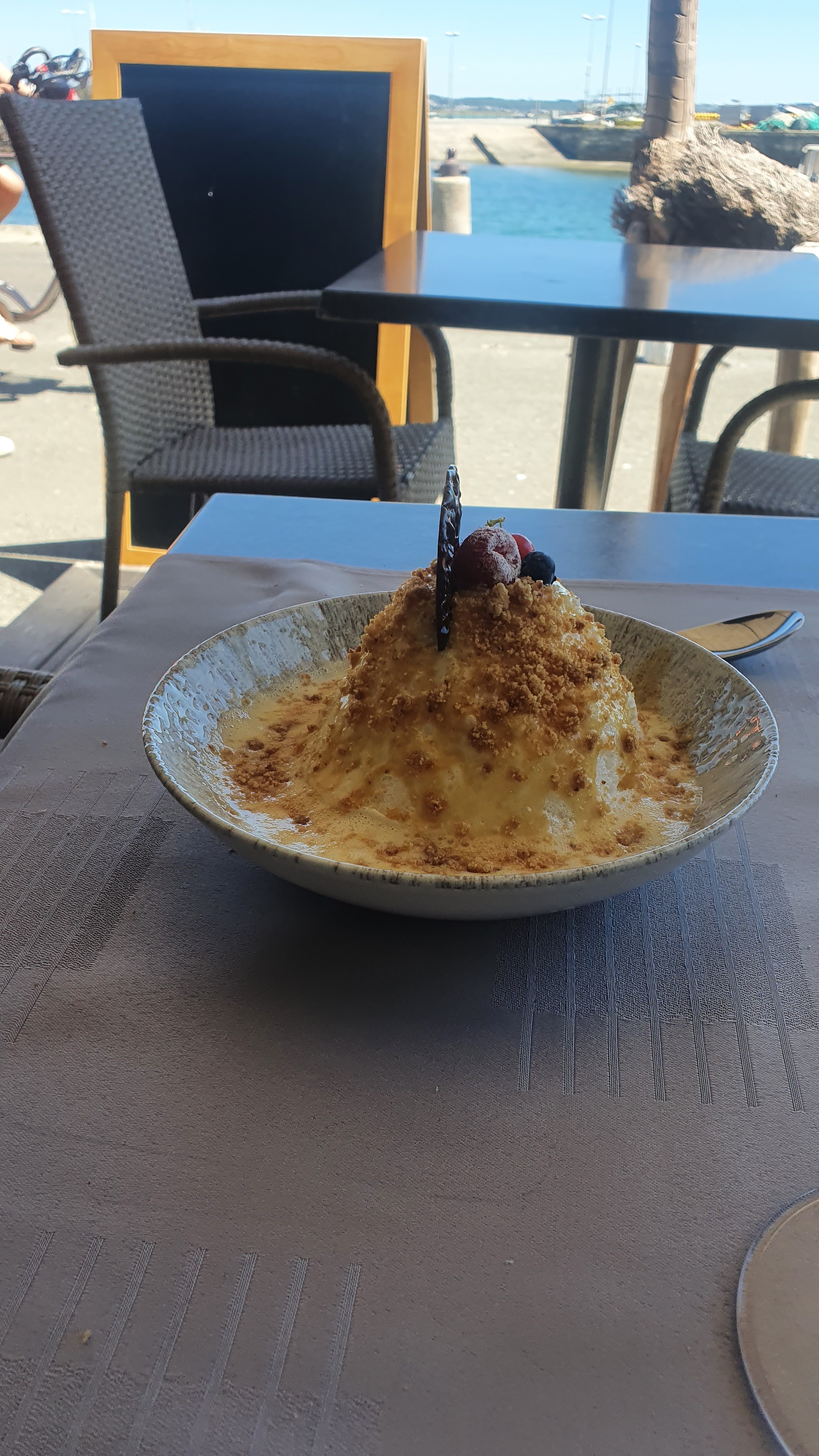 Cadre agréable face au port. Terrasse chauffée. Accueil sympathique. Bonne cuisine et produits de qualité. Un bémol sur le dessert (moelleux coco plutôt sec que moelleux). Trop d'attente en période estivale, c'est pas grave nous sommes en vacances.