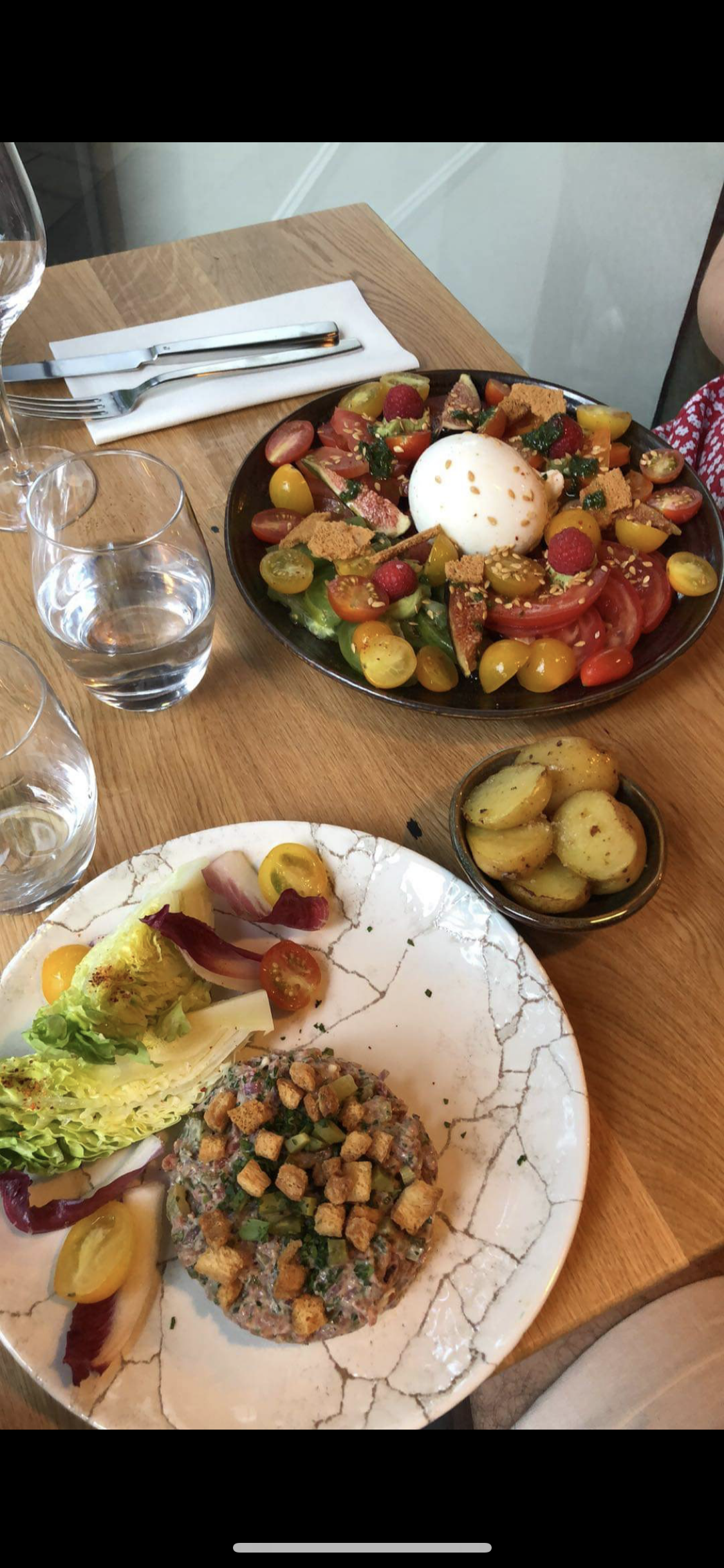 Accueil agréable, restaurant moderne avec un intérieur et une terrasse propre, repas délicieux ( tartare pour notre part) , bien à assaisonner, limonade , thé maison à tomber par terre. On recommande.