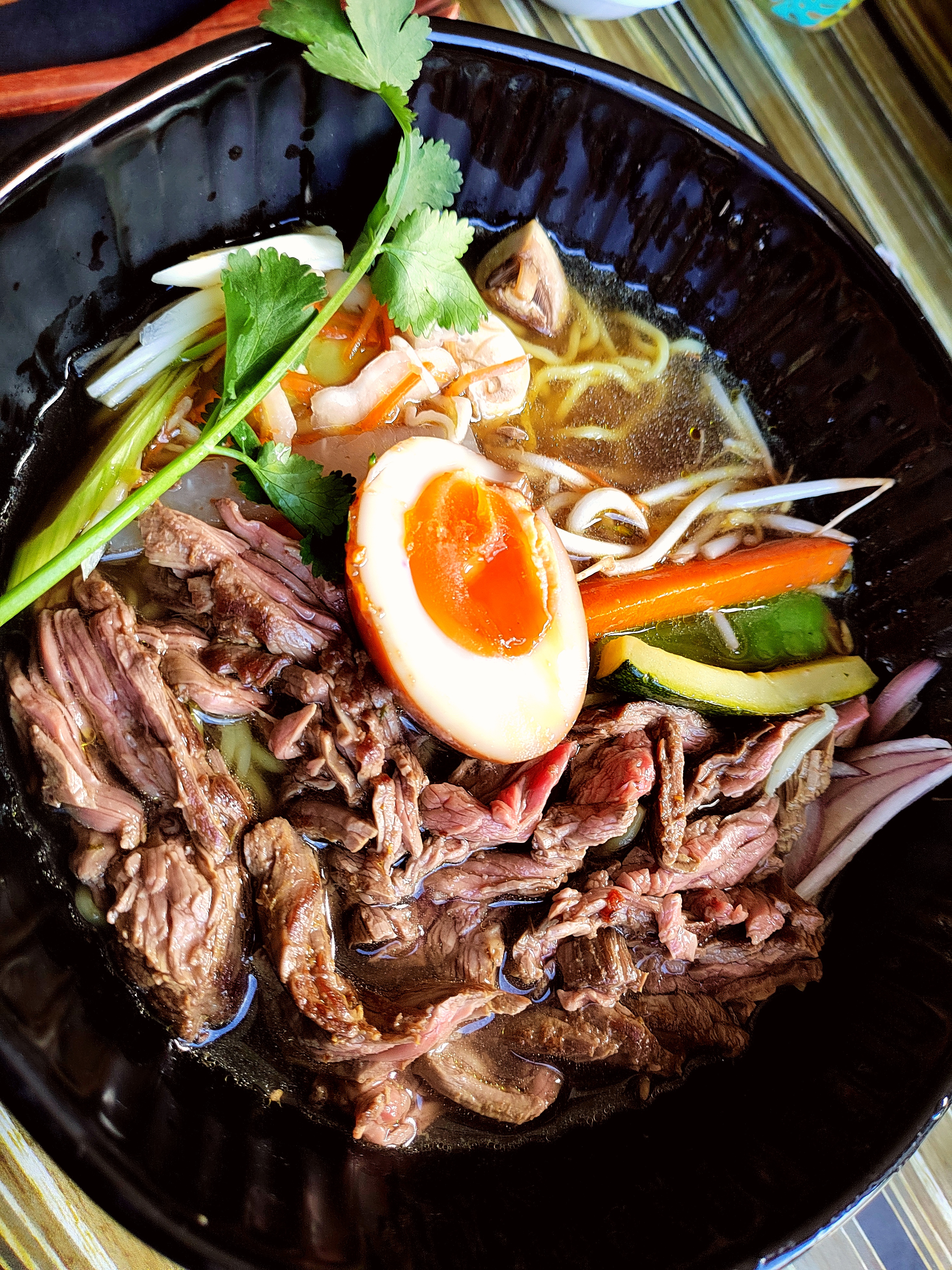 Je remercie l'équipe de cette expérience culinaire ! Un ramen au bœuf aux notes subtiles avec de la viande de qualité.