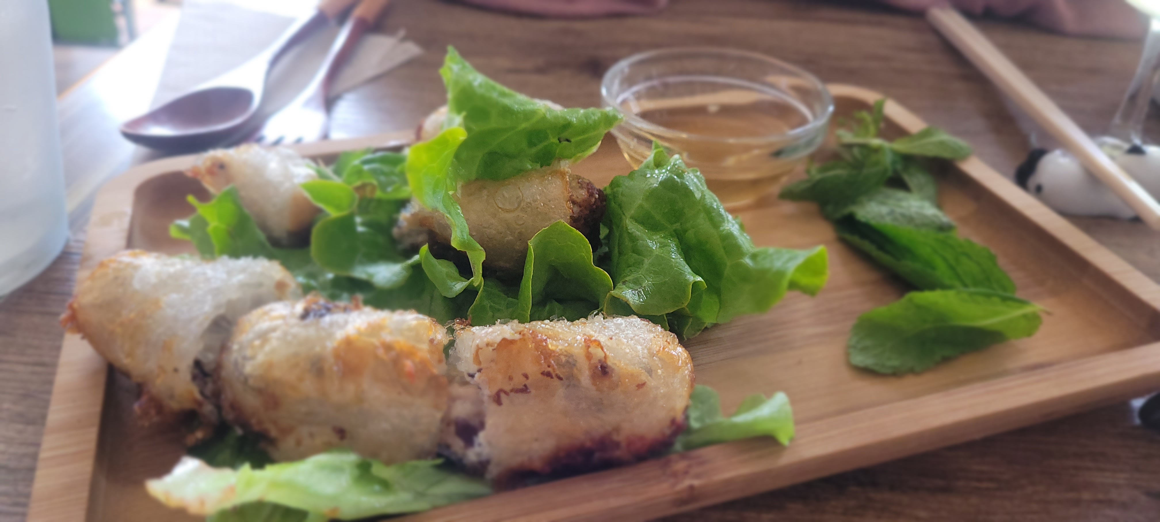 La salade crudités, nems, nouilles chinoises avec coriandre, menthe etc est DELICIEUSE et copieuse.