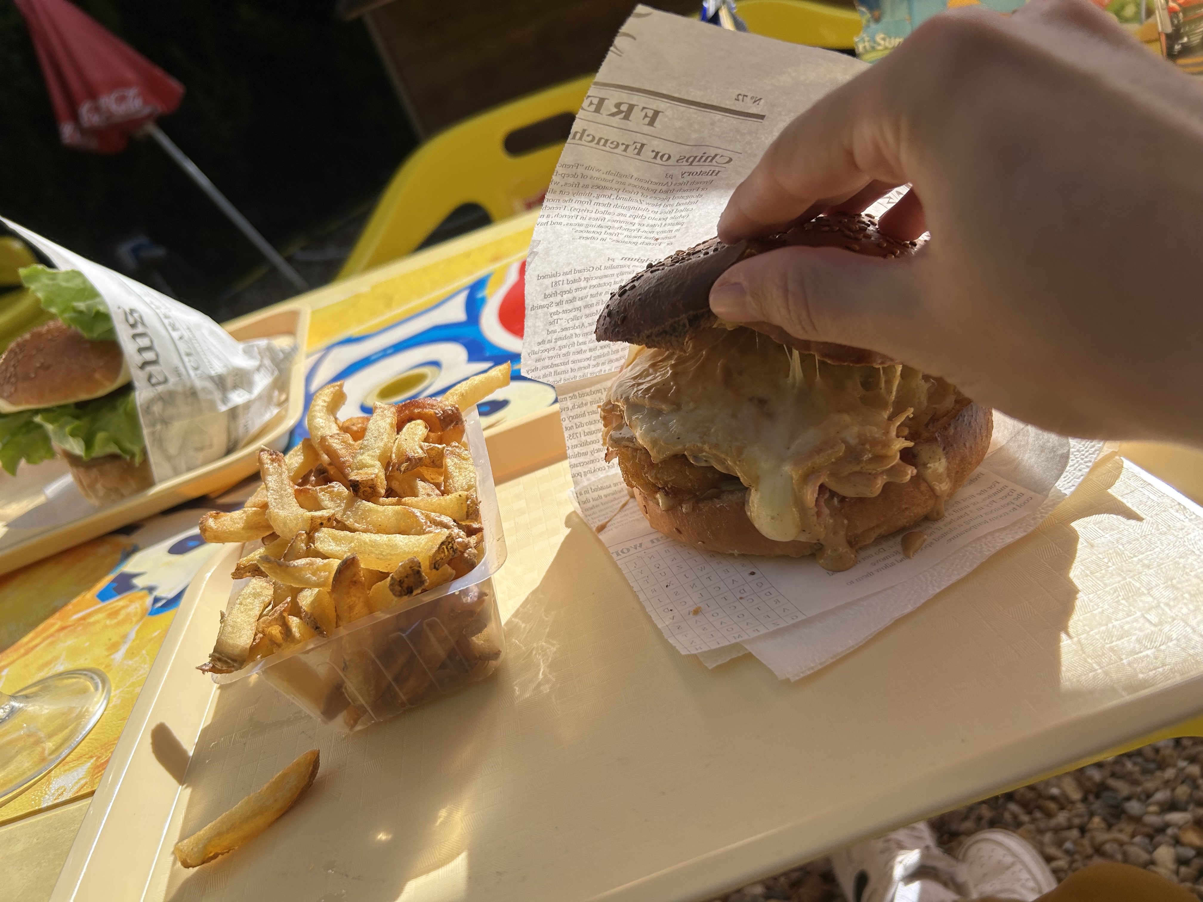 Lieu un peu atypique et qui ne paye pas de mine mais les burgers sont très très bons. Produits locaux, frites et sauces maison. Vous pouvez vous arrêter les yeux fermés. Attention plutôt ouvert le soir.