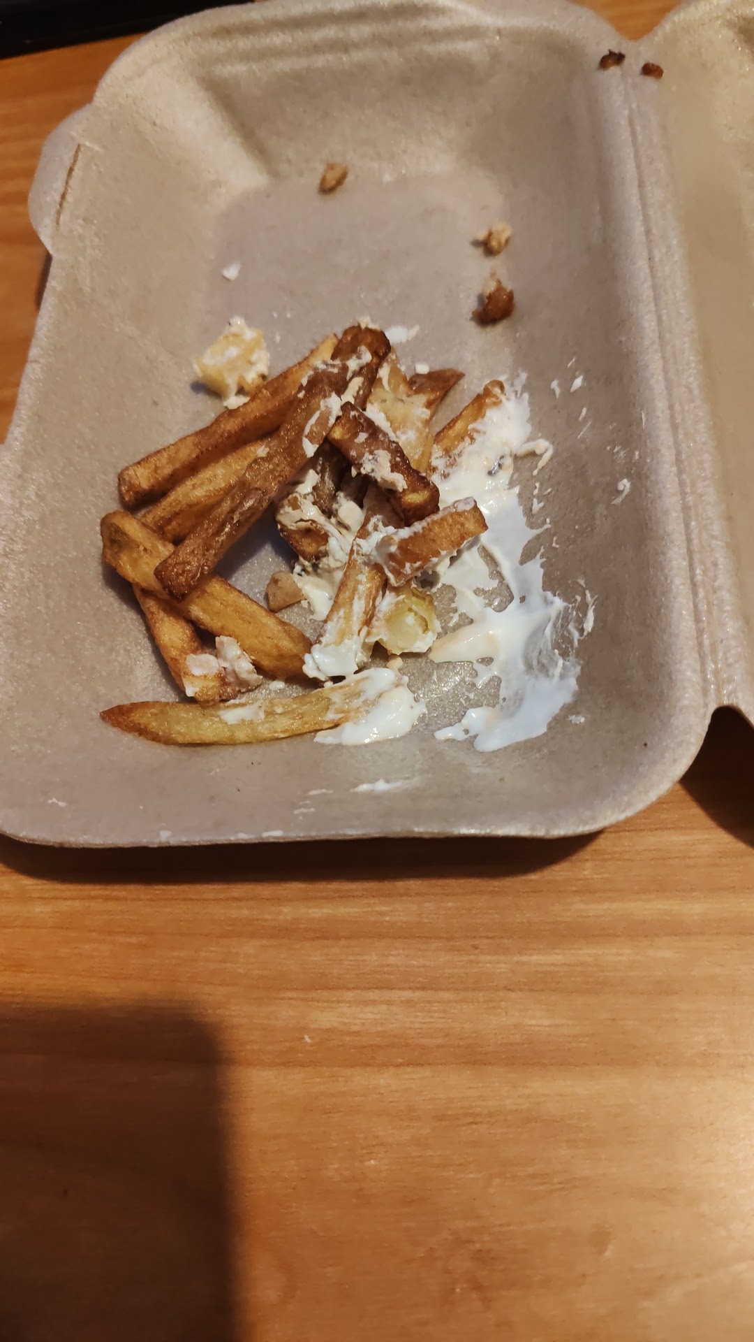 Hygiène laissant a désirer fortement, l’huile de friture deguelasse ca a pourrie mes frites les sauces sans gouts la viande a un gout de cramé bref dernière fois si l’inspection d’hygiène y passe …